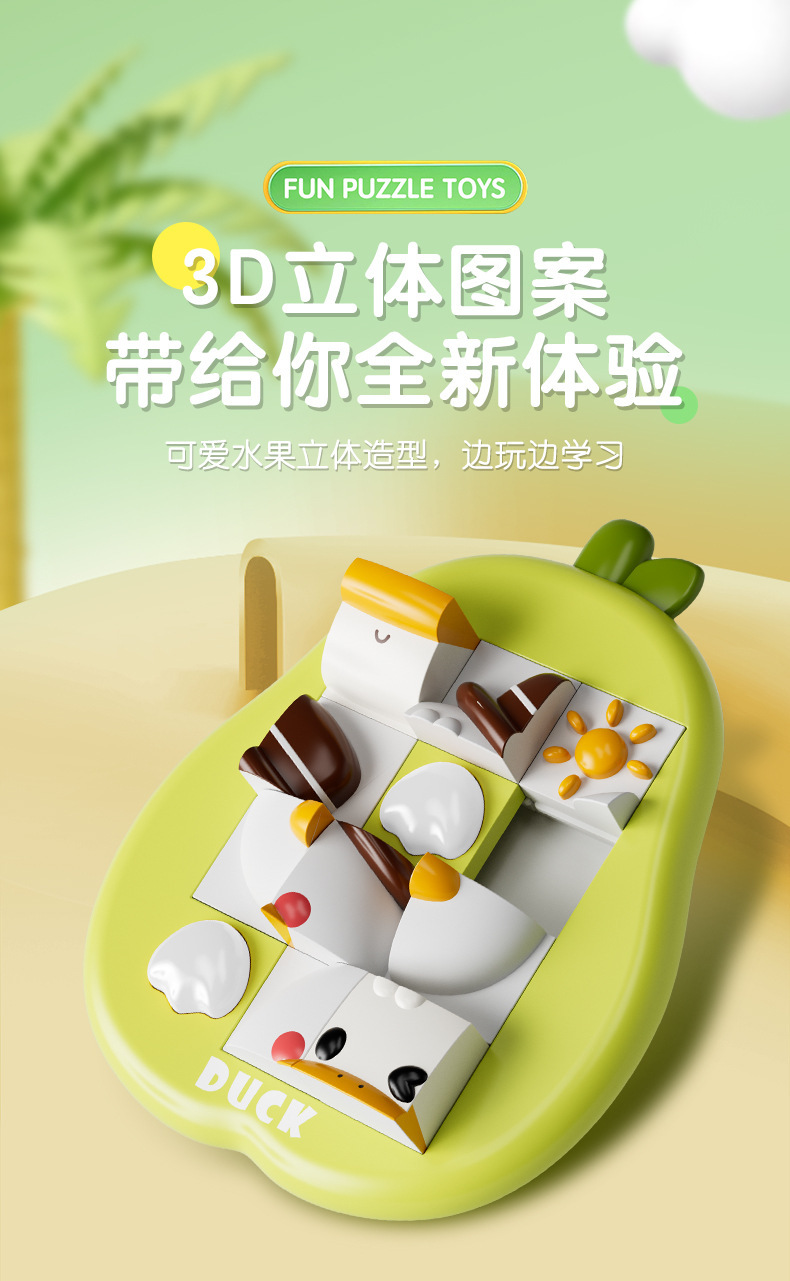 만화 과일 Huarong Road 퍼즐 슬라이딩 퍼즐 조기 교육 생각 미로 공 재미 어린이 3D 데스크탑 장난감