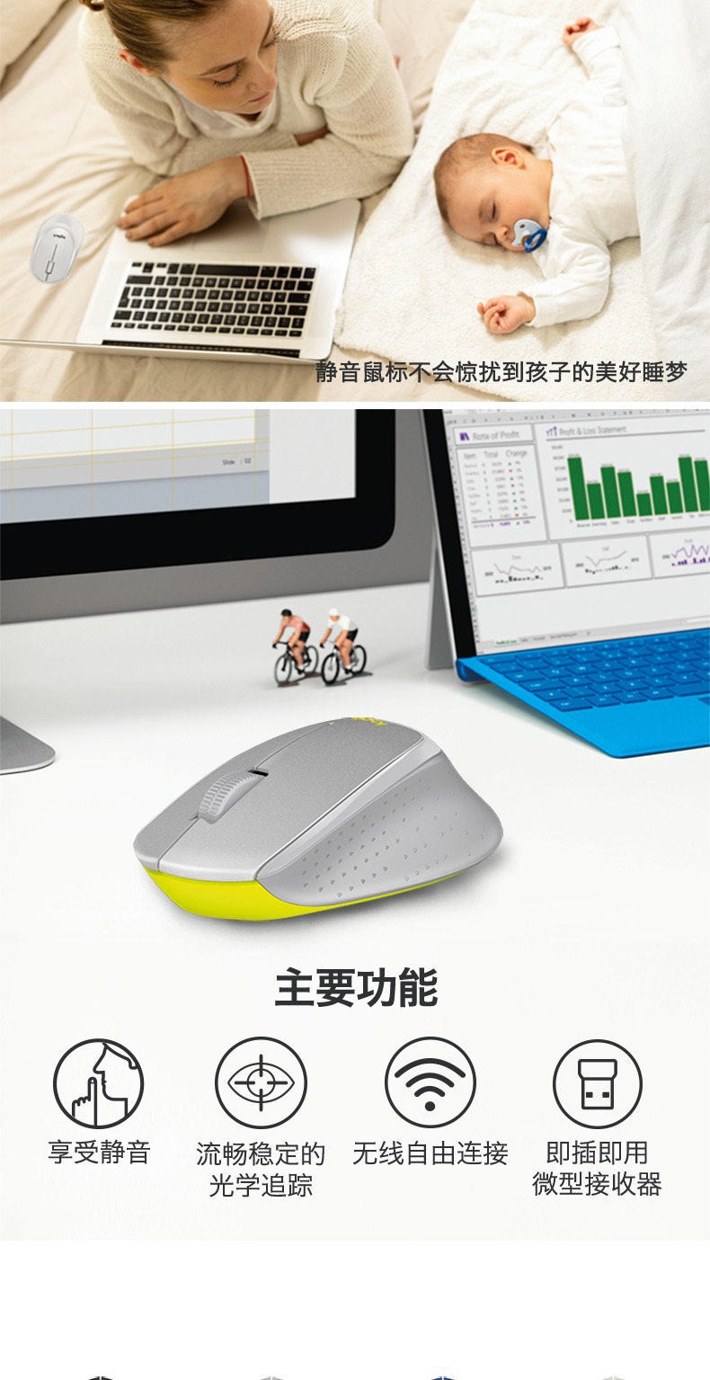 로지텍 로지텍 M330 무선 2.4G 라이트 마우스 사무실 컴퓨터 배터리 사일런트 마우스 작은 손 마우스