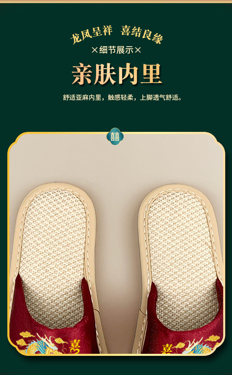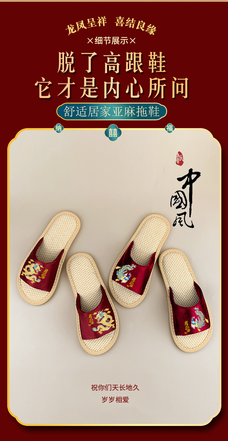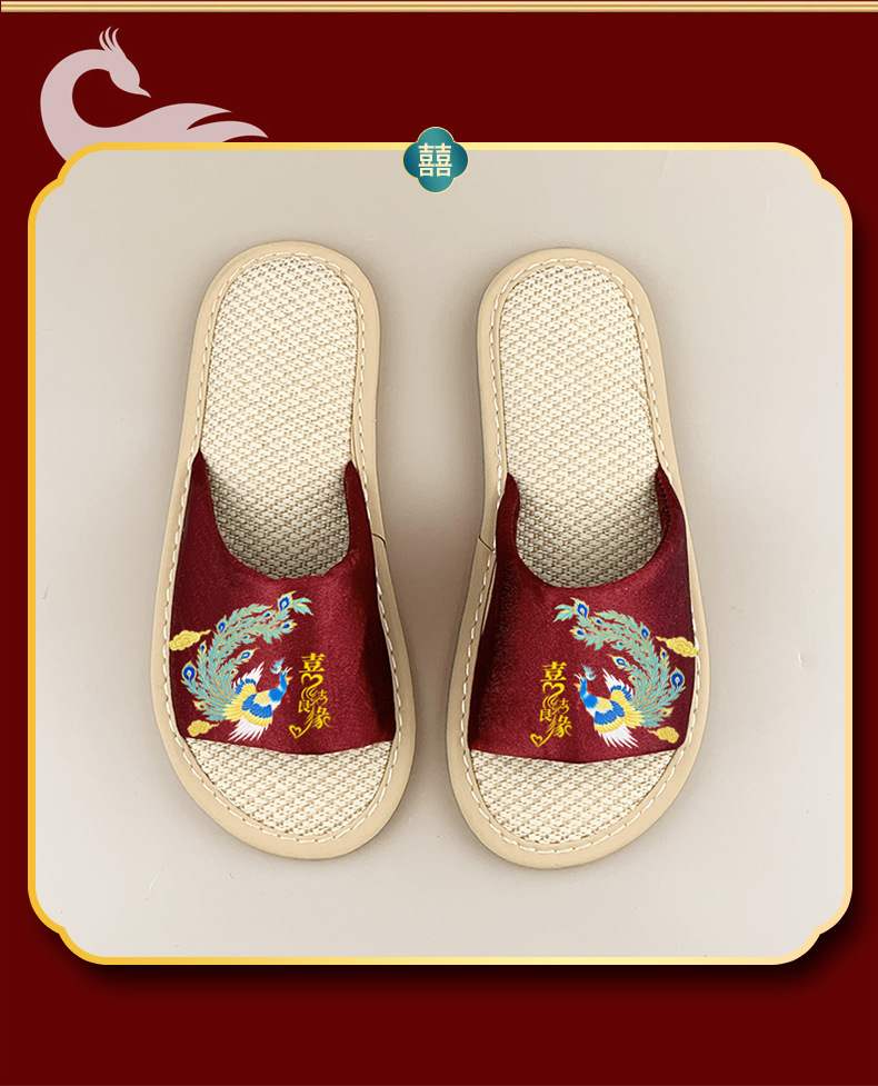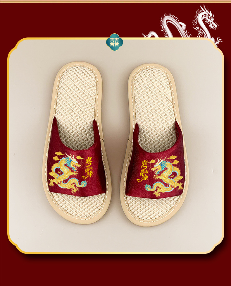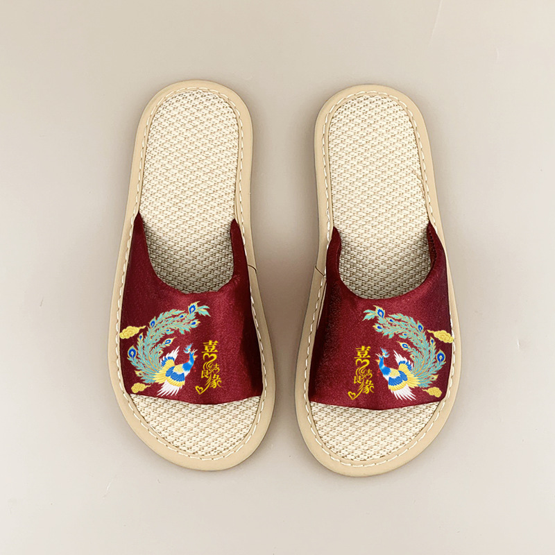 결혼식용 슬리퍼, 와인 레드, 신혼부부를 위한 축하용, 신랑 신부용, 용과 봉황, 여름용 슬리퍼스토어 가기