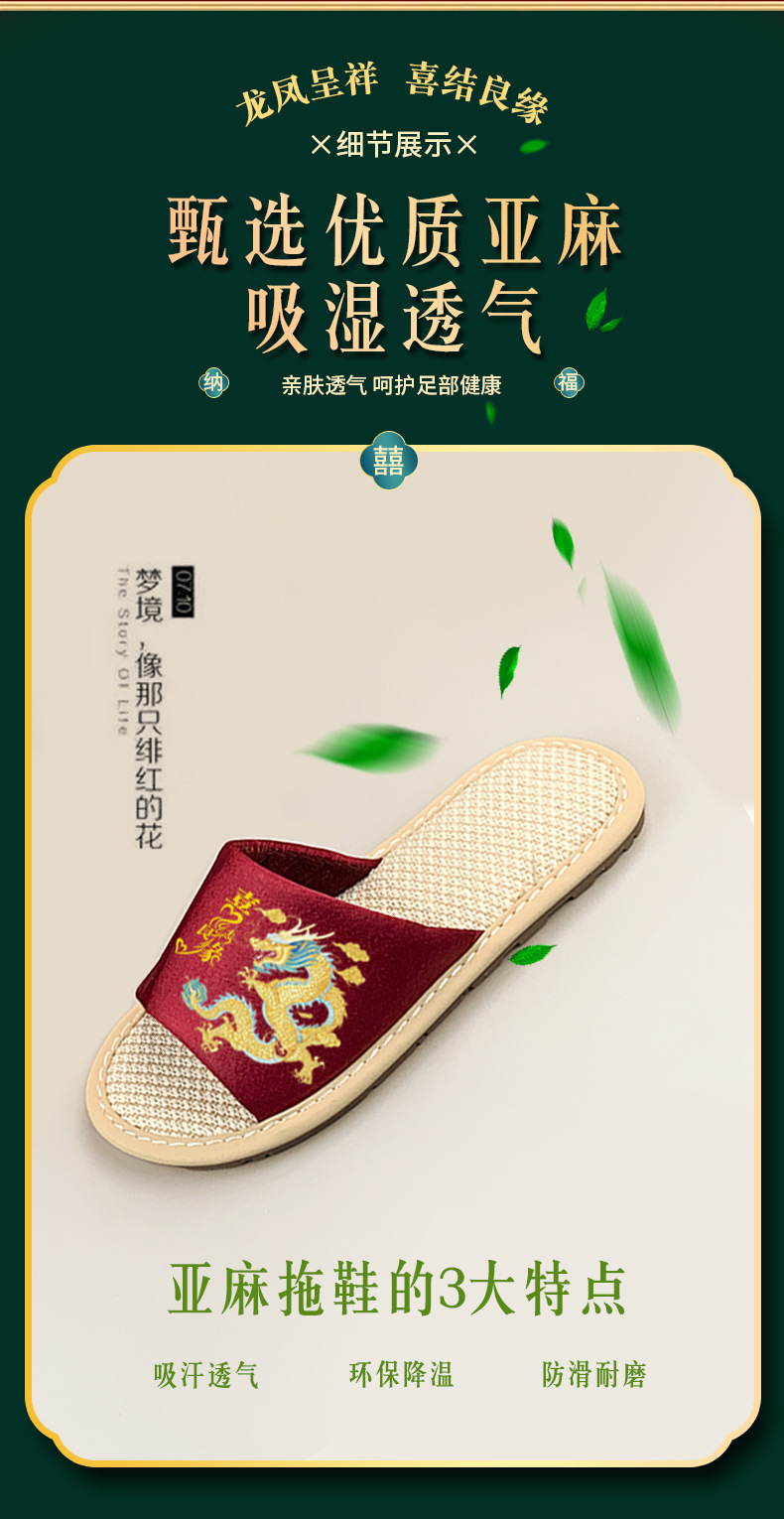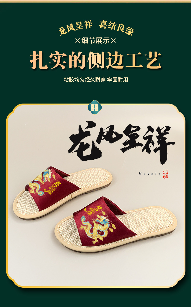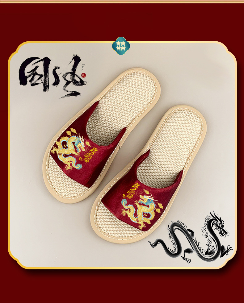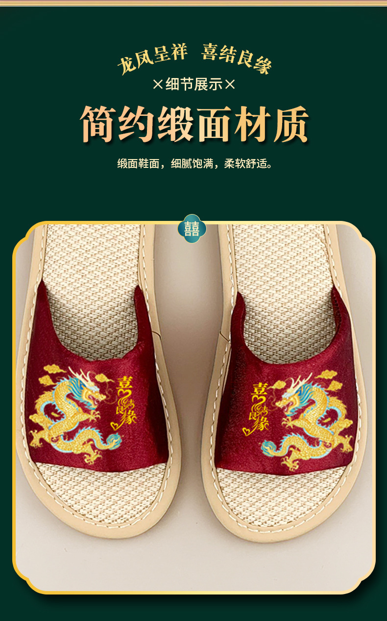 결혼식용 슬리퍼, 와인 레드, 신혼부부를 위한 축하용, 신랑 신부용, 용과 봉황, 여름용 슬리퍼스토어 가기