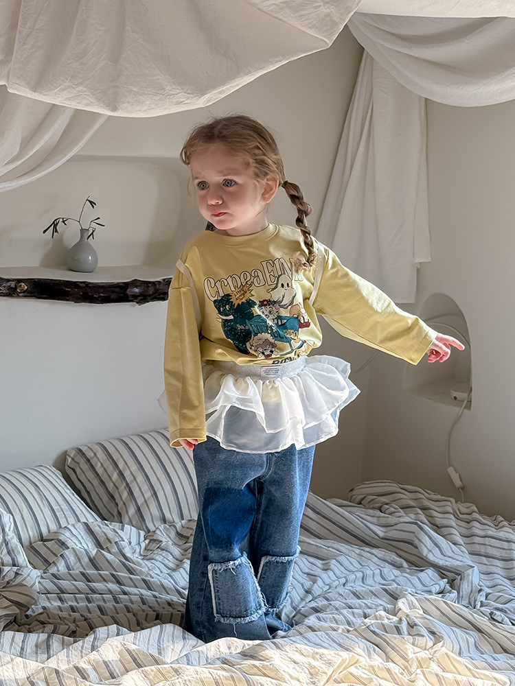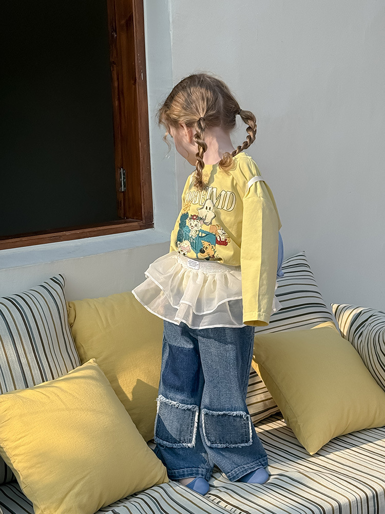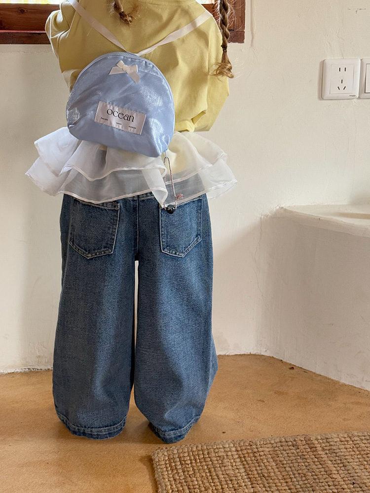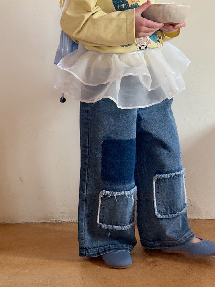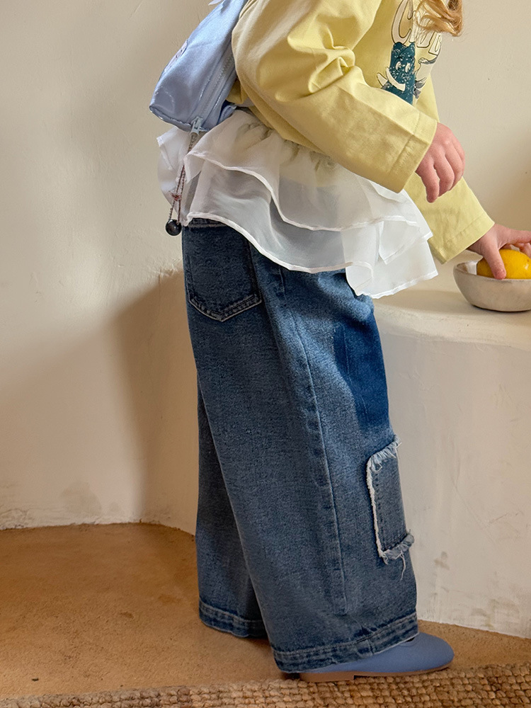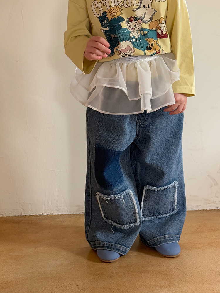 국경 간 아동 바지 2025 봄 새로운 한국 스타일 소년과 소녀 패치 청바지 아동 느슨한 데님 스트레이트 바지