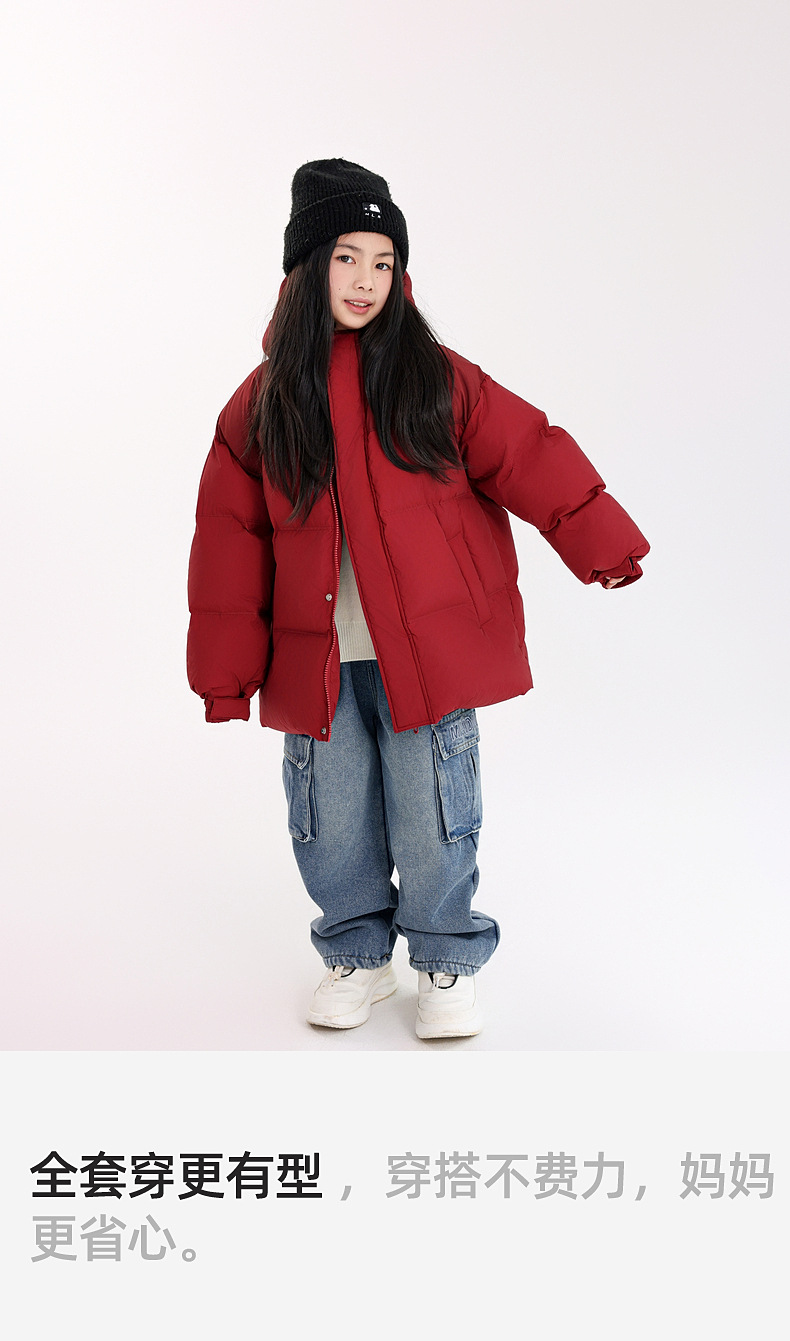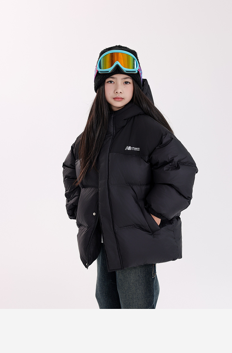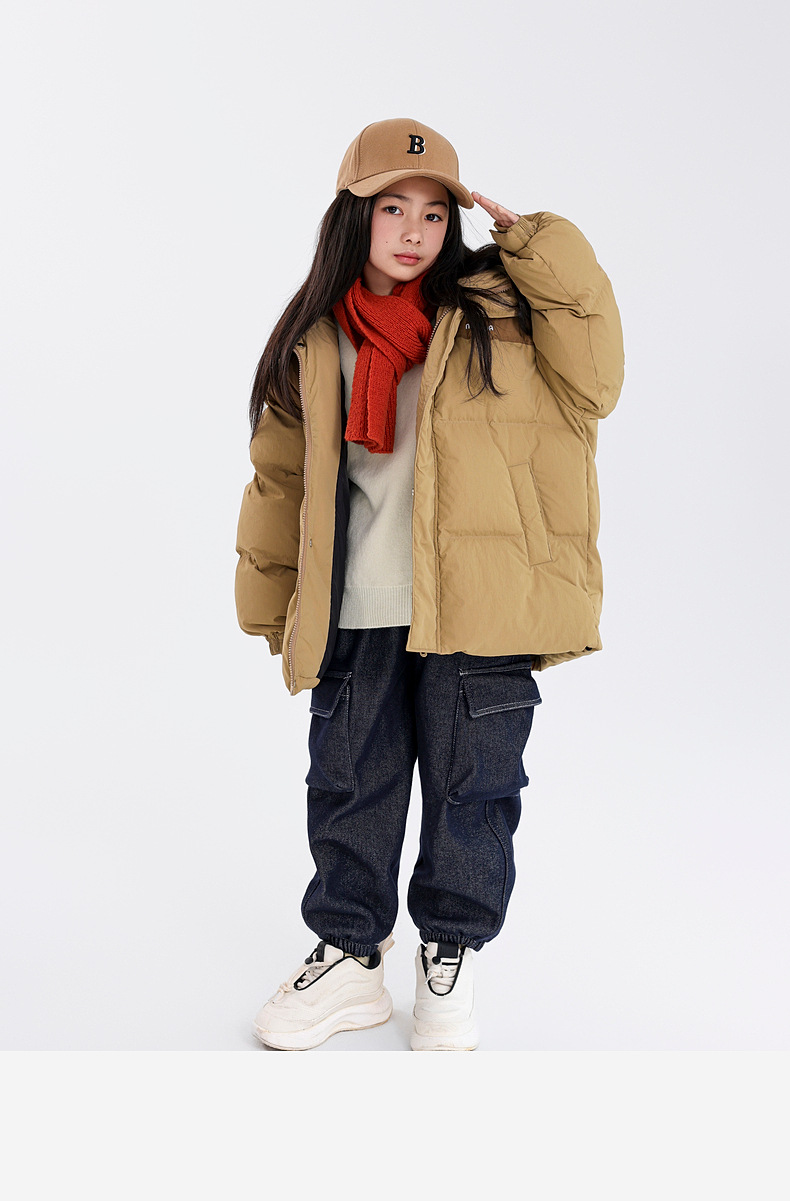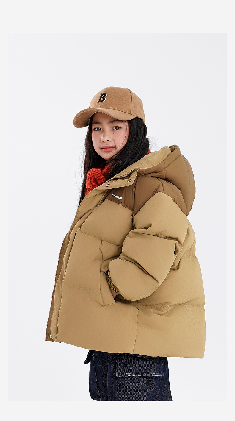 新国标90白鸭绒高充绒女童羽绒服 冬装儿童三防羽绒外套面包服
