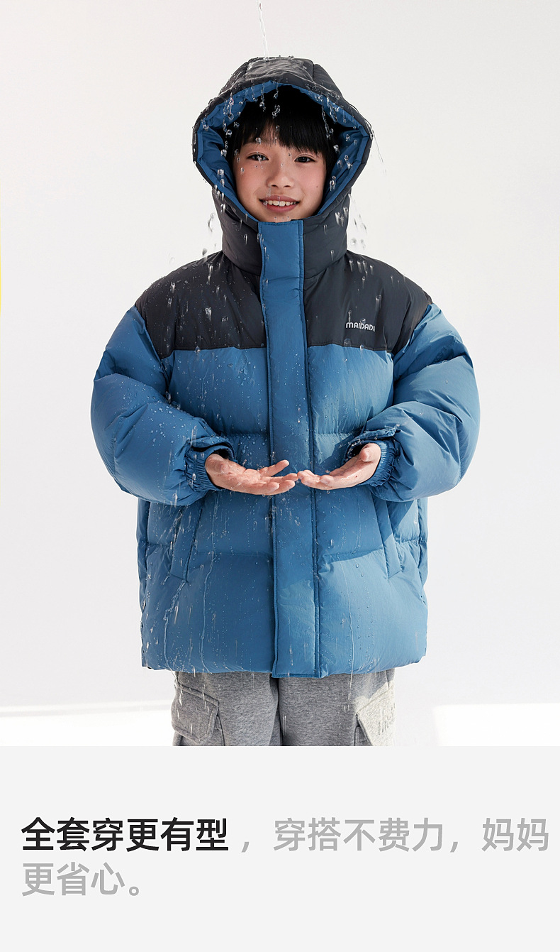 冬季高充绒三防儿男童羽绒服 新国标90白鸭绒面包服儿童羽绒外套