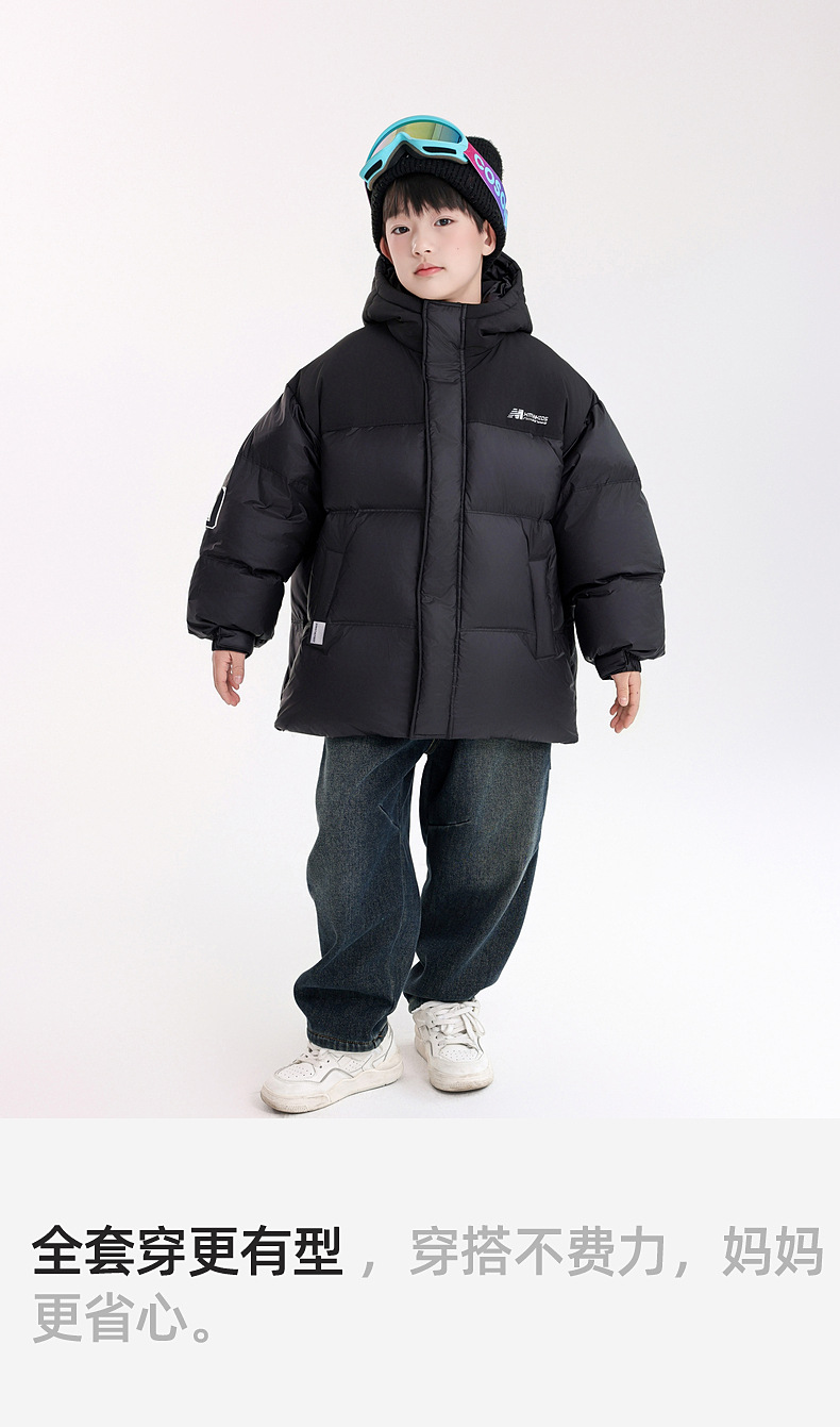 可溯源90白鸭绒男童三防高充绒羽绒服 儿童冬季外套加厚面包服