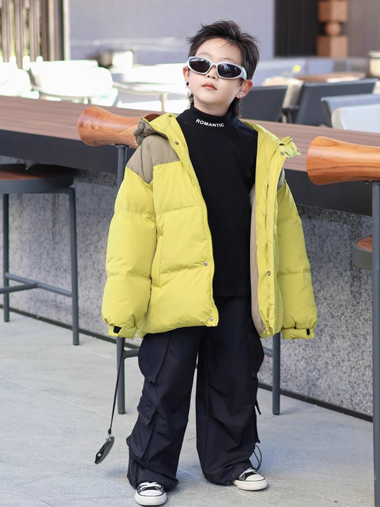 冬装高充绒男童羽绒服可溯源新国标90白鸭绒免洗PU皮儿童羽绒外套