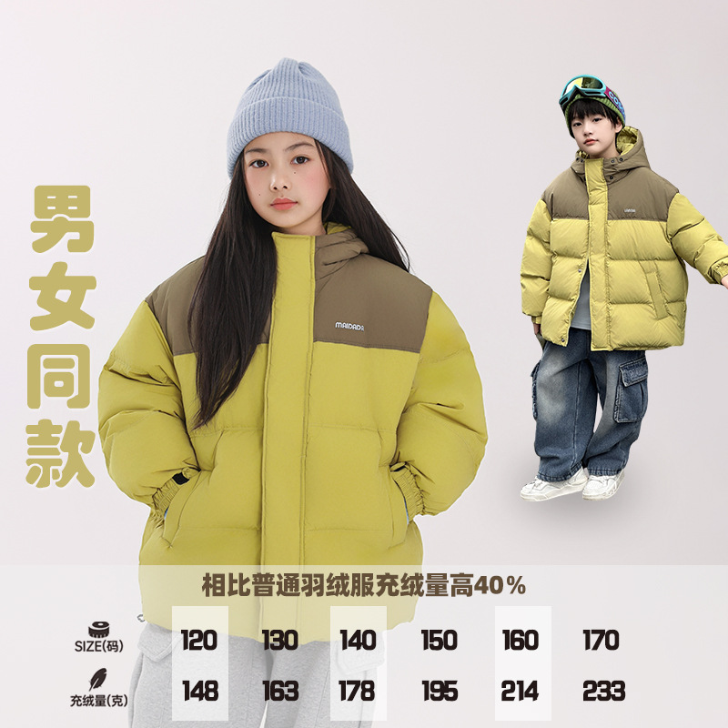 可溯源90白鸭绒高充绒杜邦三防儿童羽绒服外套男女童防风面包服