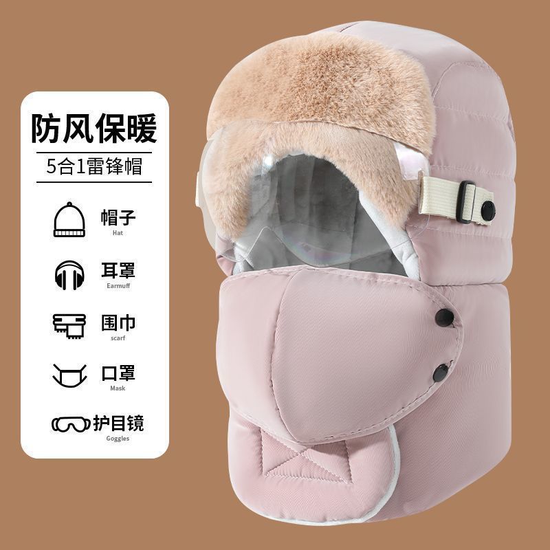 • 고급스러운 방수 [핑크] 그래피티 두꺼운 모자 + 김서림 방지 거울
