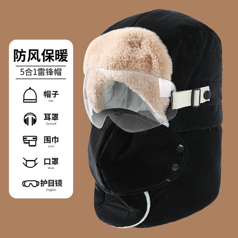• 고급스러운 방수 [베이지] 그래피티 두꺼운 모자 + 김서림 방지 거울
