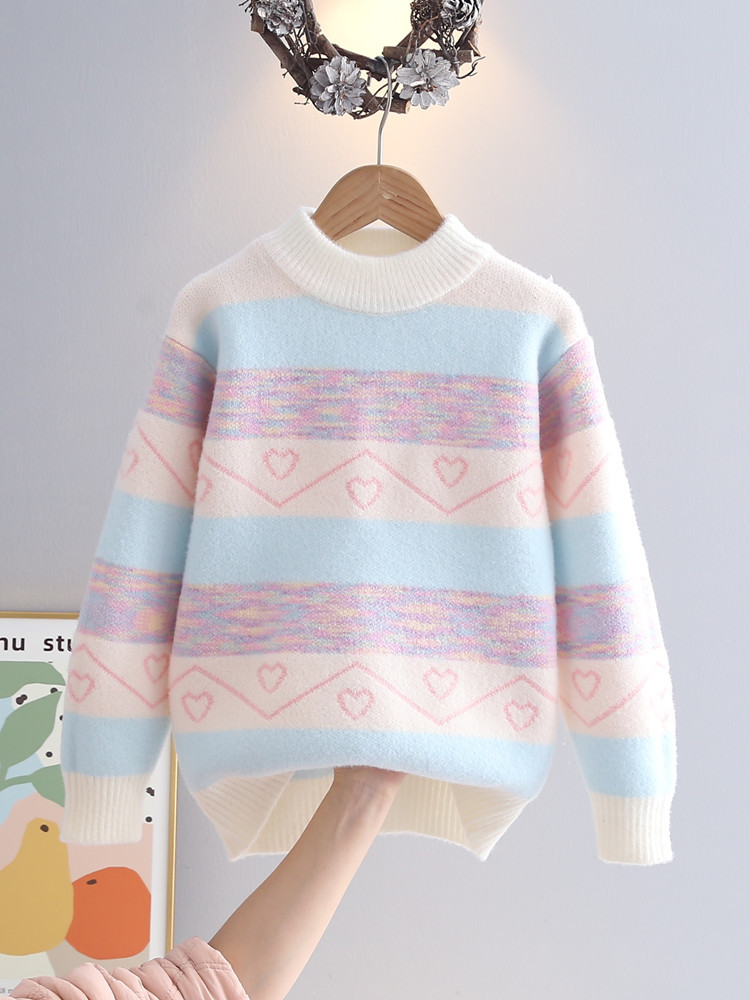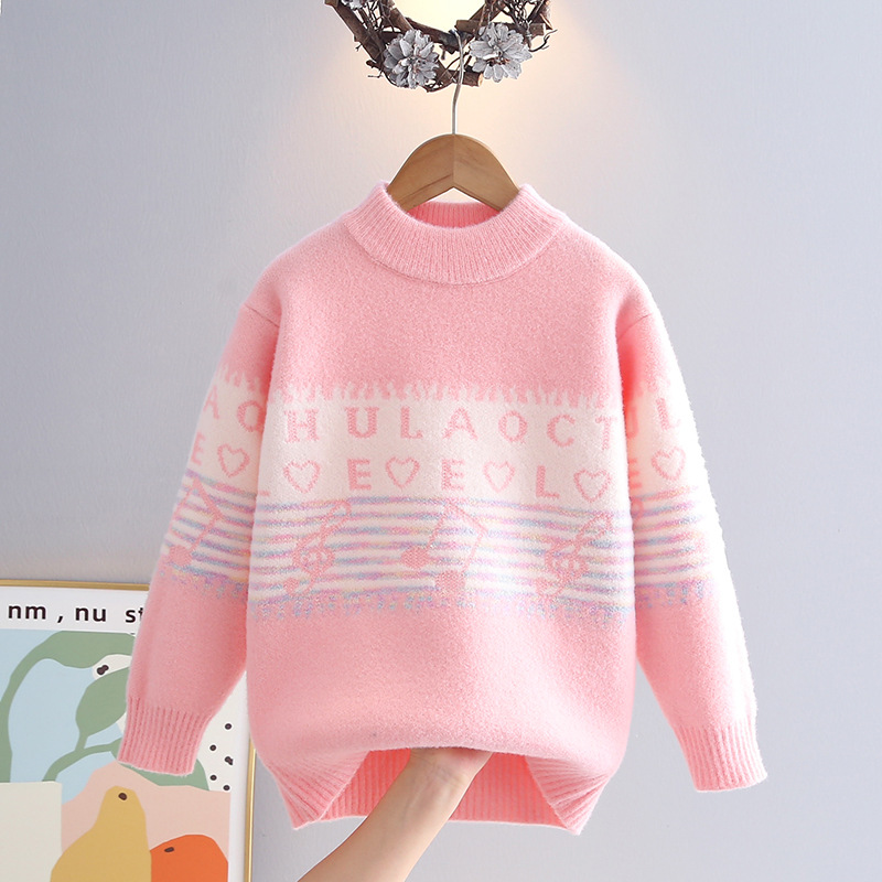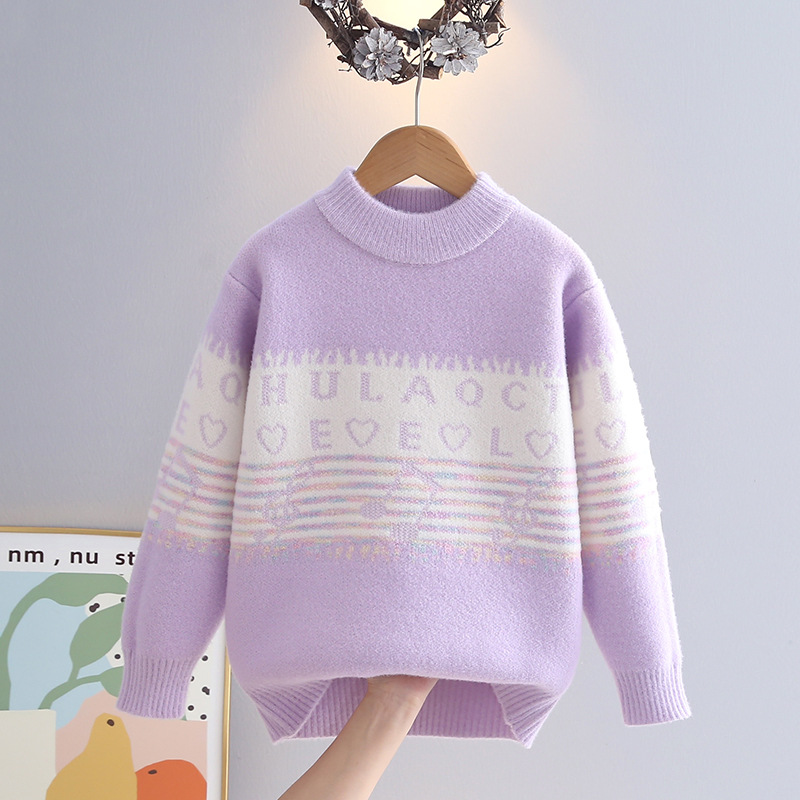 소녀 가을 겨울 스웨터 대형 어린이 소녀 니트 스웨터 한국 벨벳 따뜻한 보텀아웃 착용 어린이 스웨터 아동복