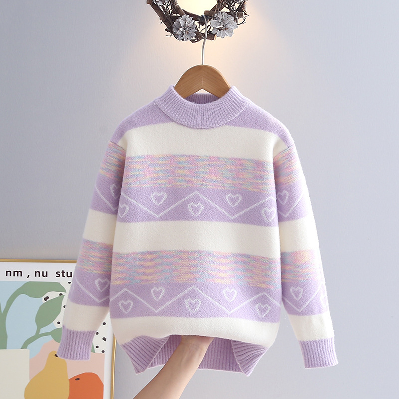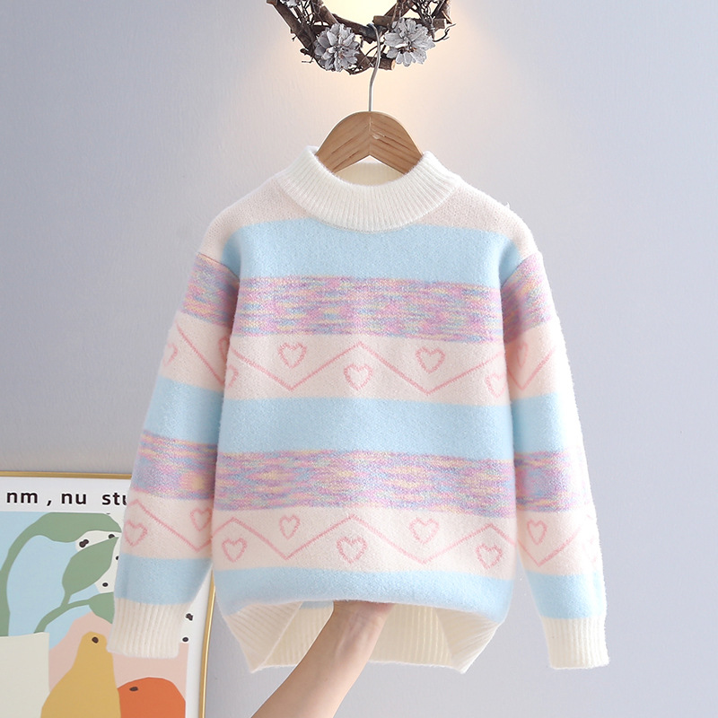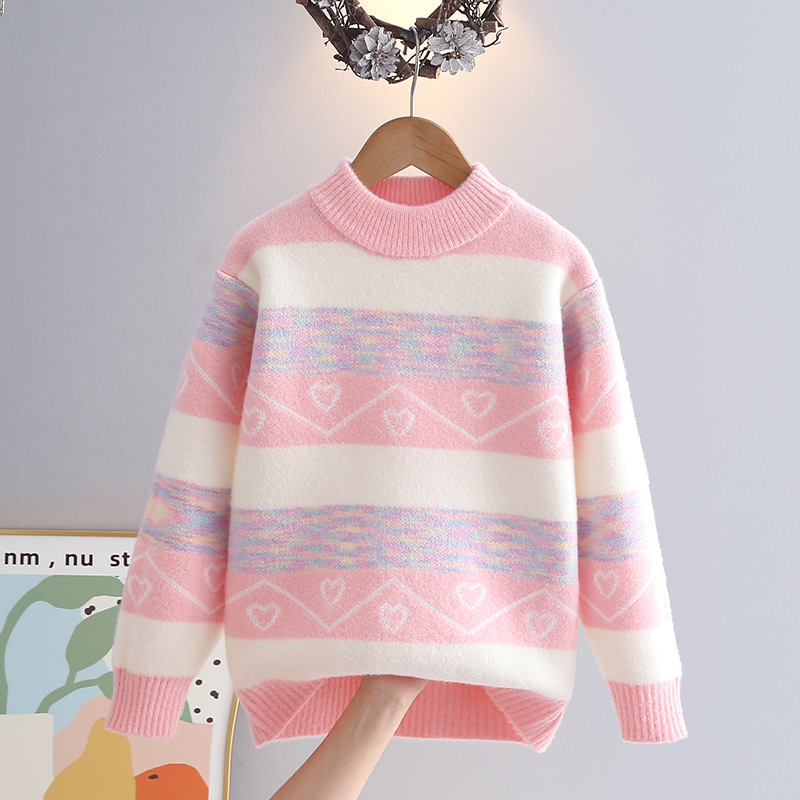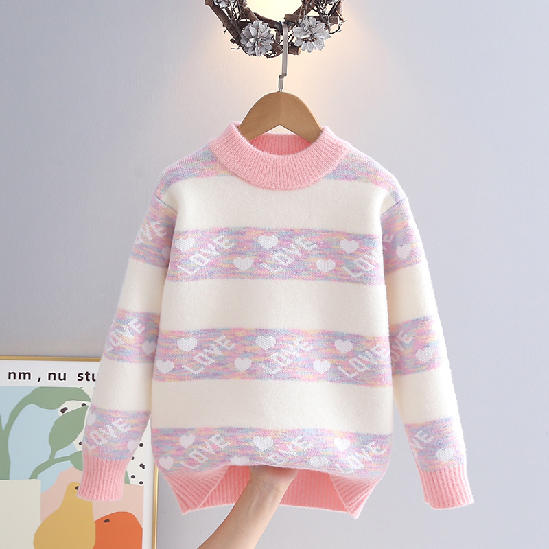 소녀 가을 겨울 스웨터 대형 어린이 소녀 니트 스웨터 한국 벨벳 따뜻한 보텀아웃 착용 어린이 스웨터 아동복스토어 가기
