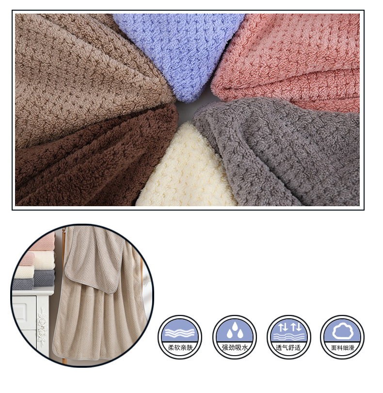 산호 벨벳 목욕 타월, 흡수력이 뛰어나고 빠르게 건조되는 파인애플 무늬 대형 비치 타월, 부드러운 가정용 미용실 타월, 초흡수성