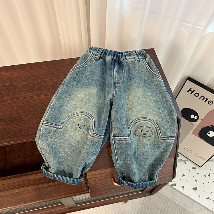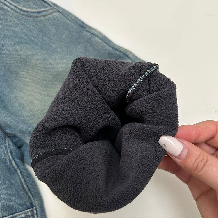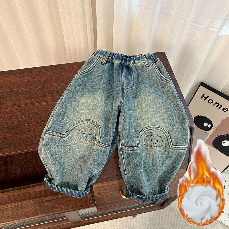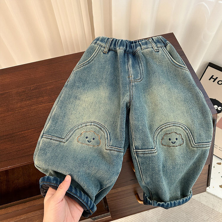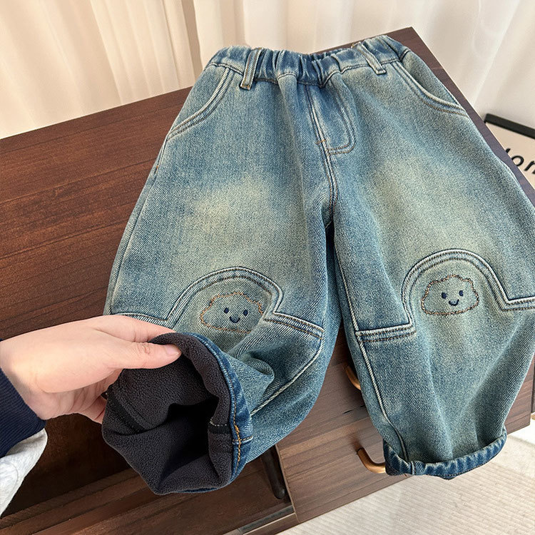 한 청바지 겨울 어린이 수 놓은 바지를 기모 남학생과 여학생을위한 가을과 겨울 새로운 벨벳 데님 바지스토어 가기