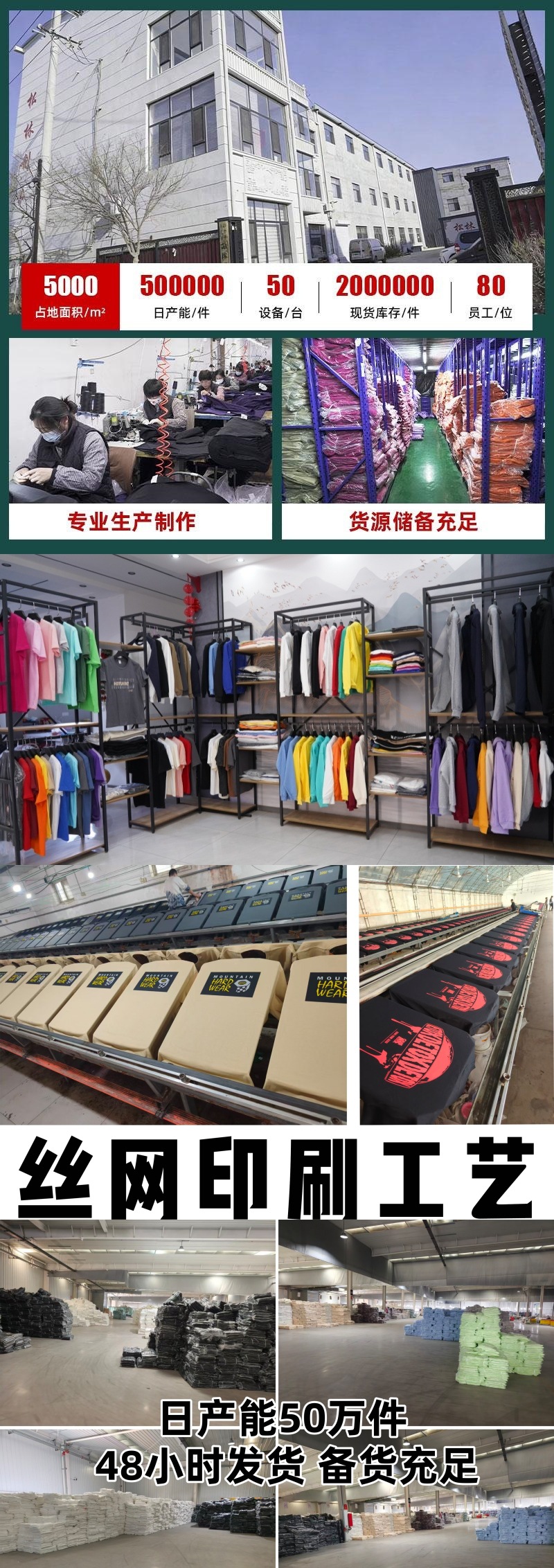 河北沧州肃宁松林制衣厂的广告衫文化衫制衣厂T恤圆领质量很好,纯棉材质柔软舒适,48小时发货,还赠的独立包装,客服回复及时耐心,20年文化衫卫衣T恤加工生产经验,工厂占地面积5000余平米,日产能50万件,服装印刷制衣设备50余台,一件起订,可代发贴牌,来图定制,服装定制就到肃宁松林制衣厂
