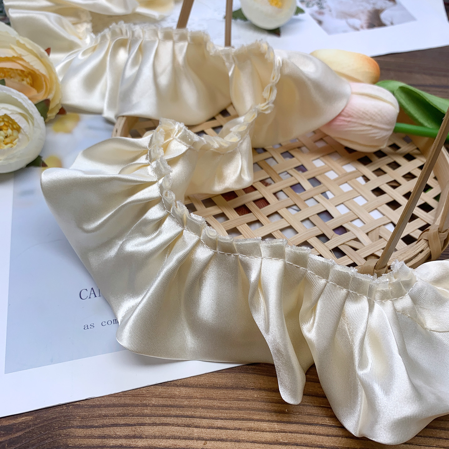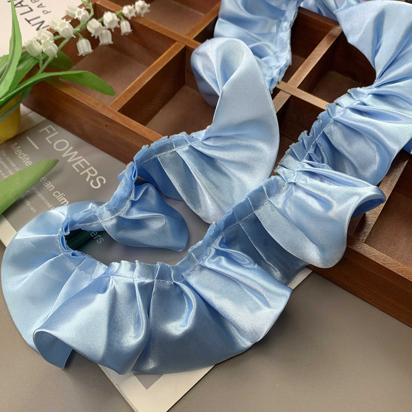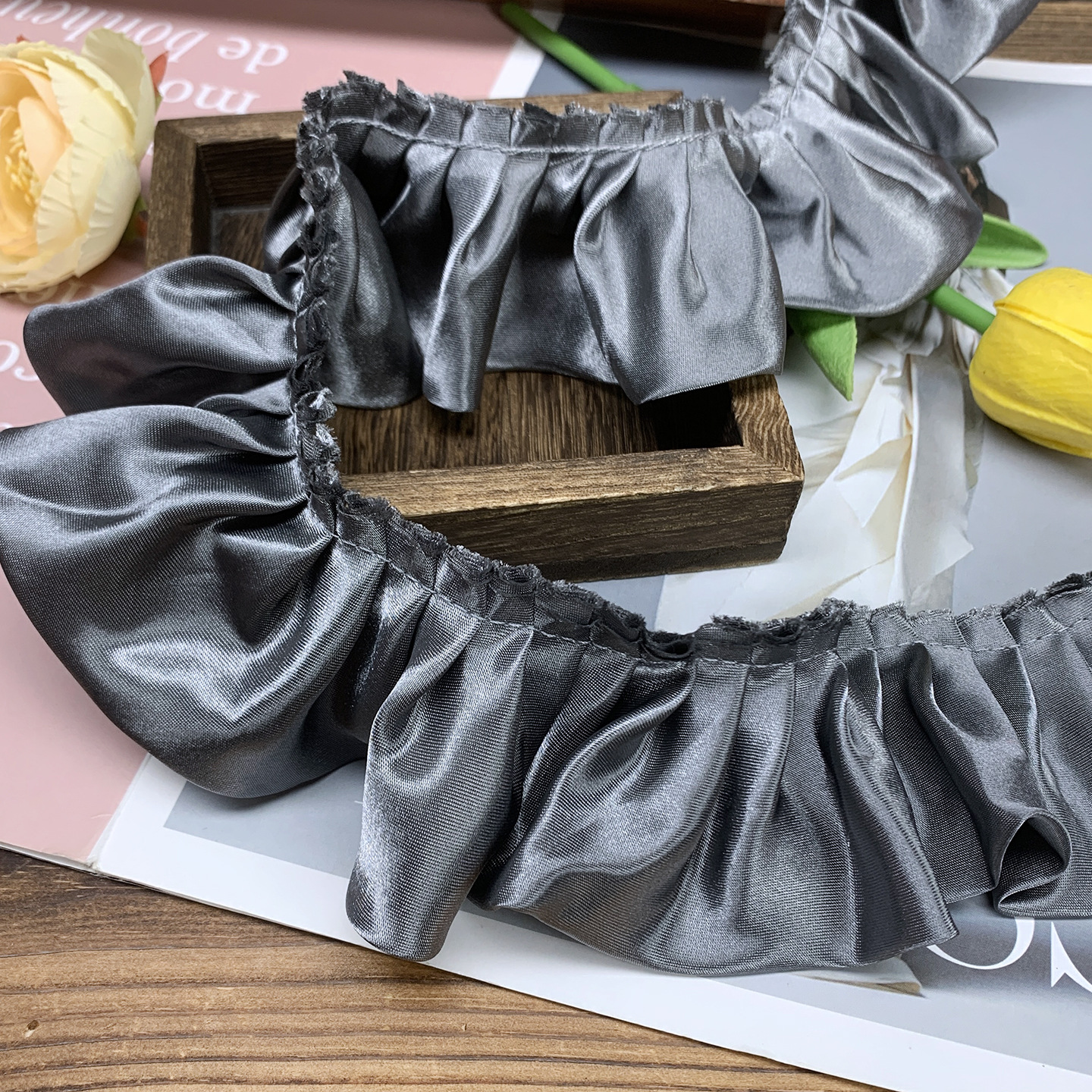 5.5cm双层色丁布打折密皱窗帘家纺坐垫靠垫毯子围