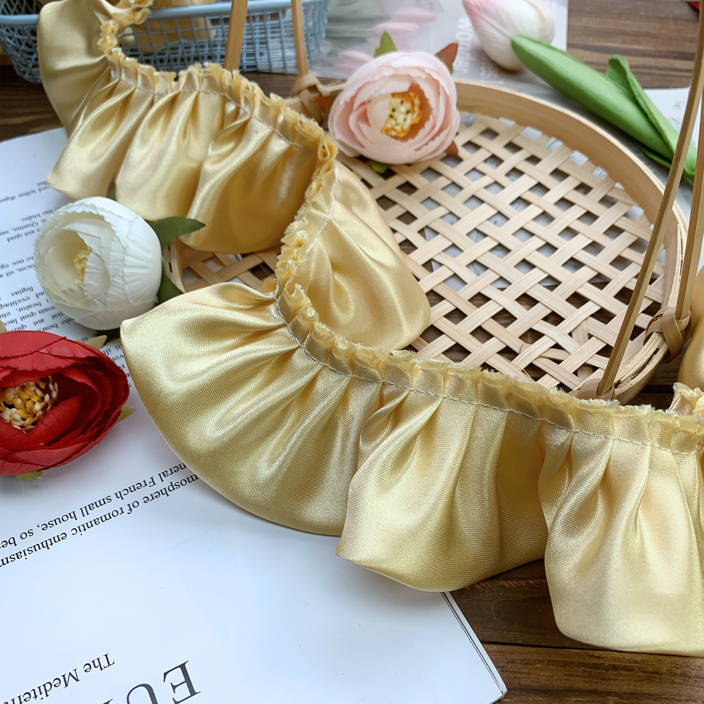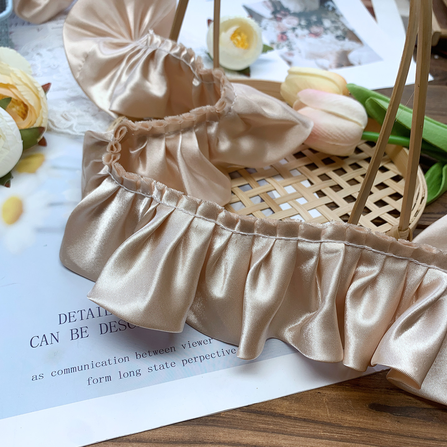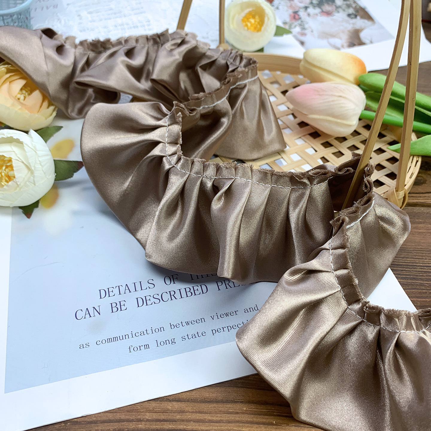 5.5cm双层色丁布打折密皱窗帘家纺坐垫靠垫毯子围
