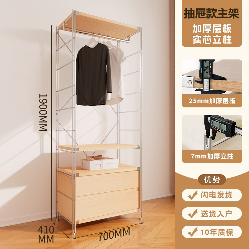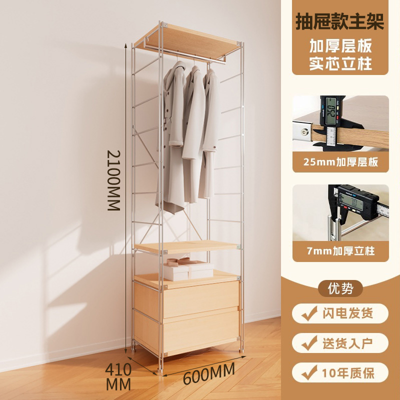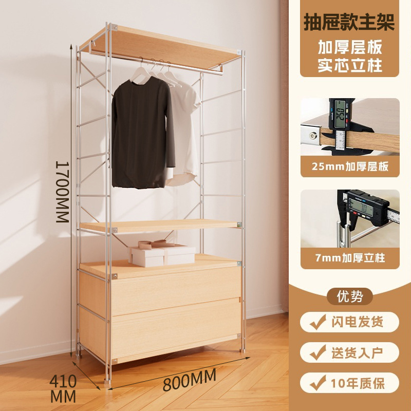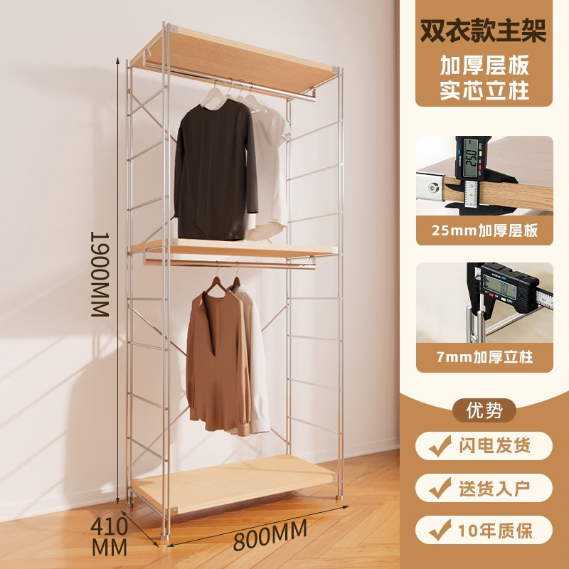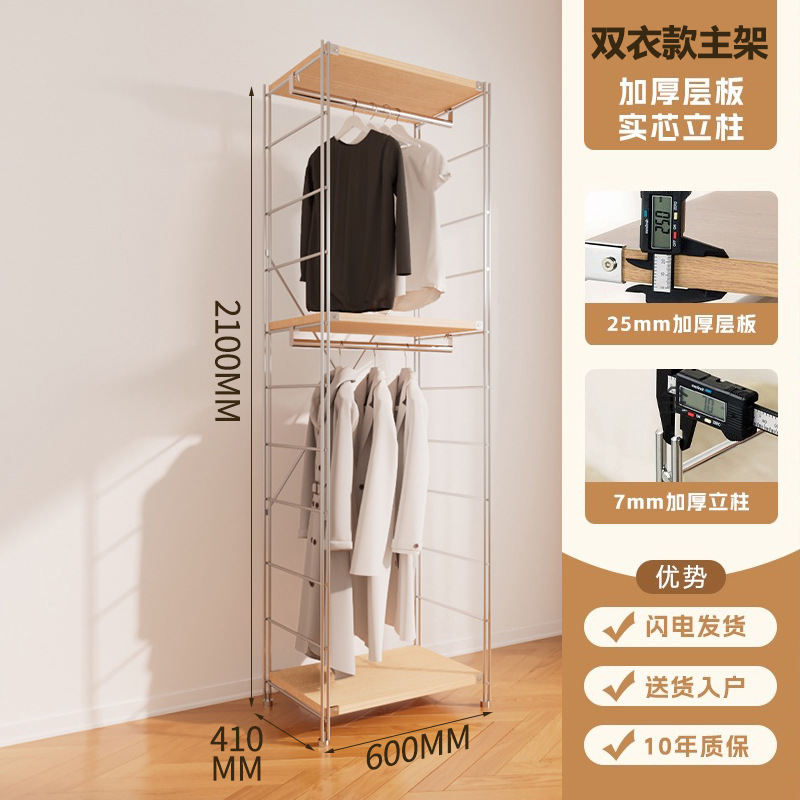가정용 오픈 옷장 침실 아이언 걸이 강철 프레임 로그 스타일 워크 인 옷장 미니멀리스트 옷장스토어 가기