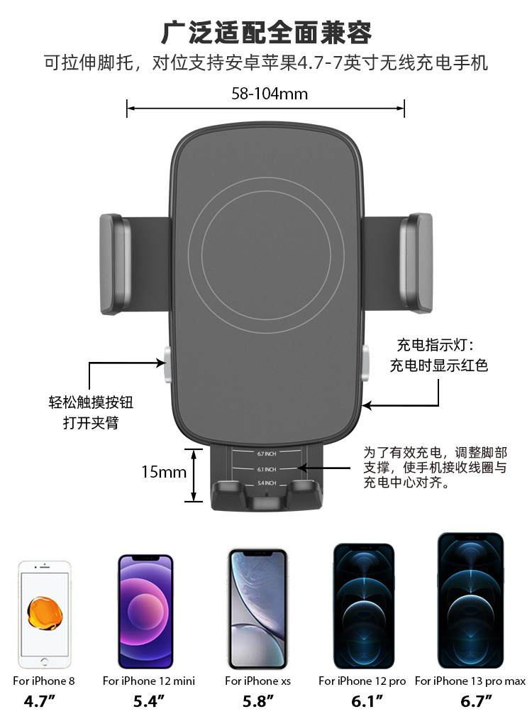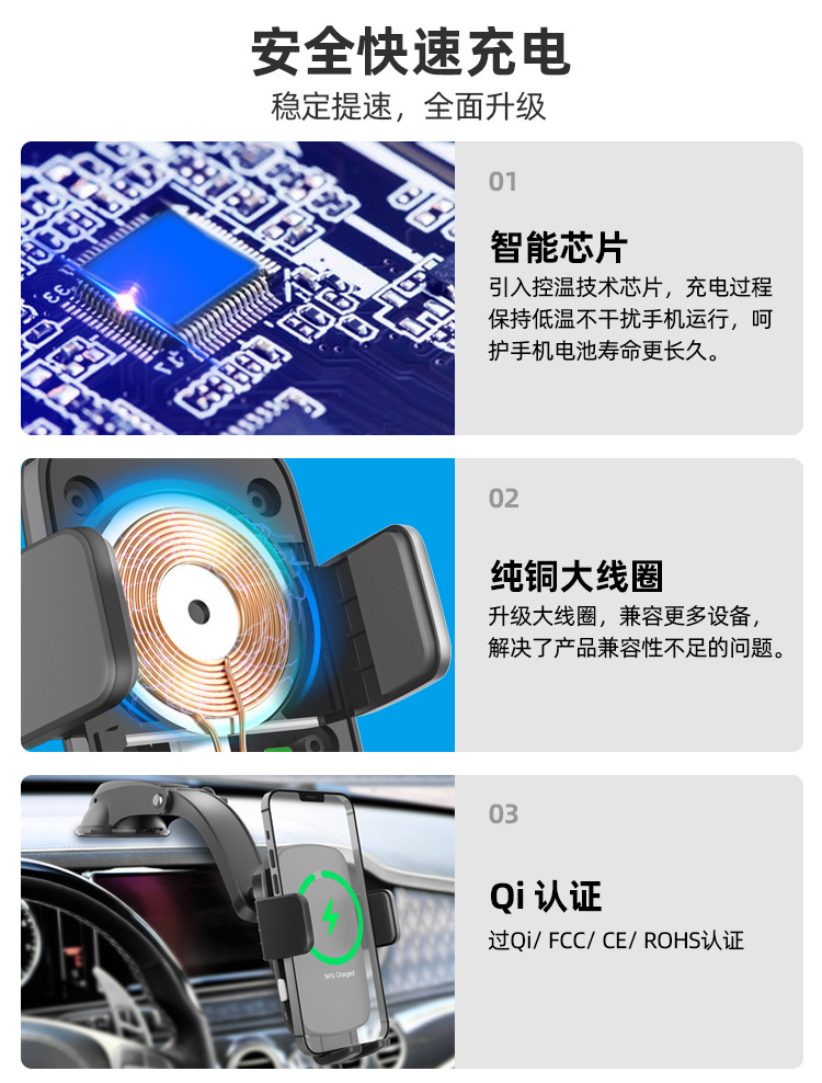 자동차 무선 충전 15w 휴대 전화 브래킷 전기 조임 모델 유니버설 다운 흡입 컵 센터 콘솔 브래킷