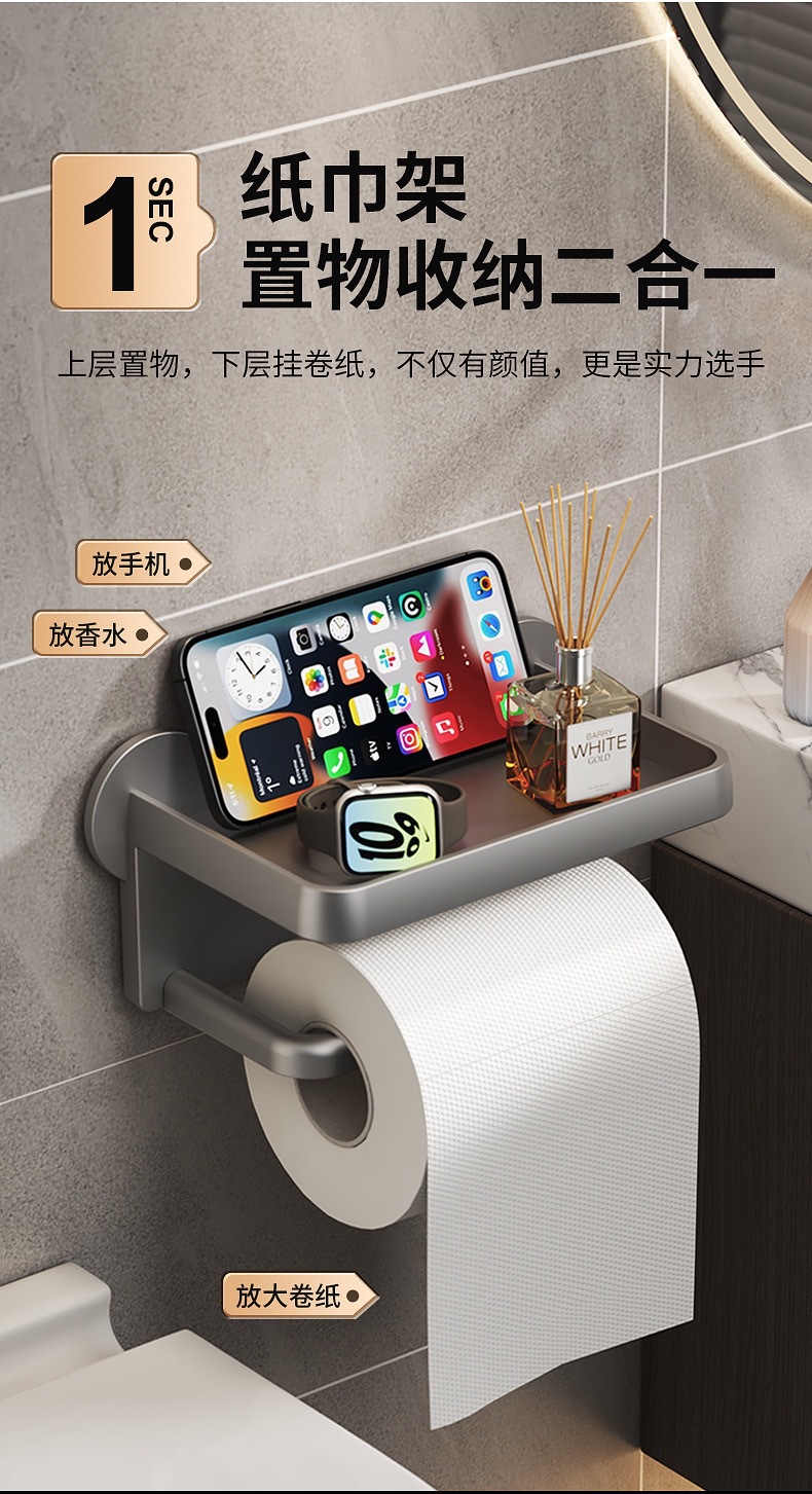 • 욕실 벽걸이 휴대폰 거치대 [건그레이]