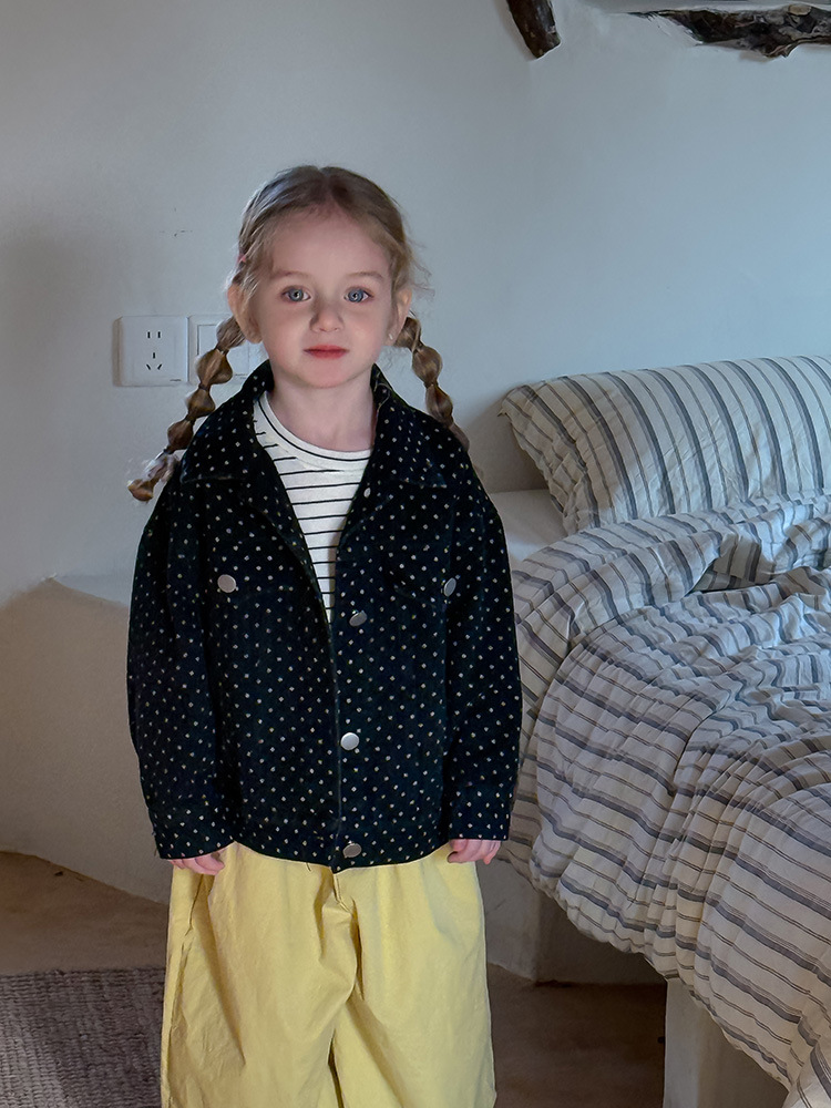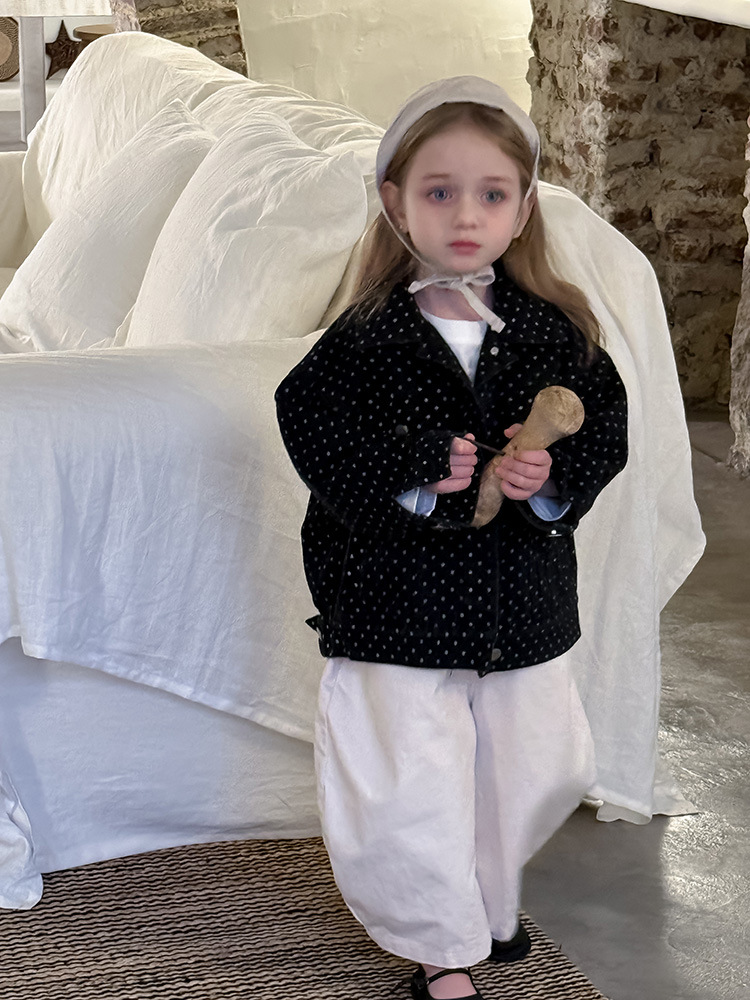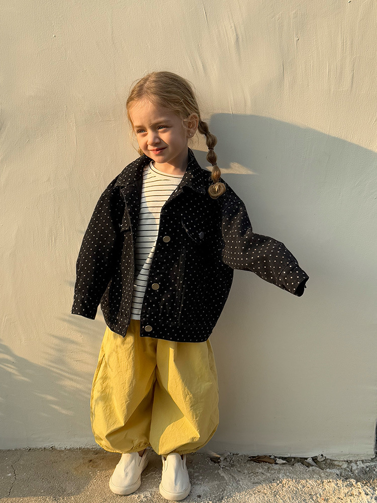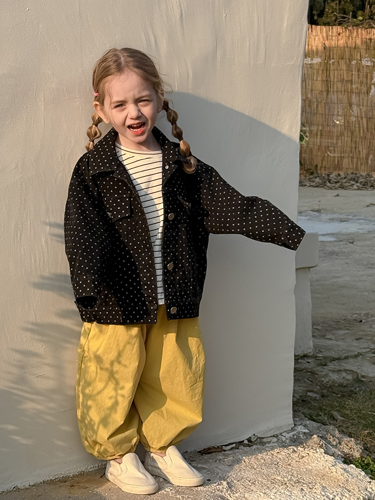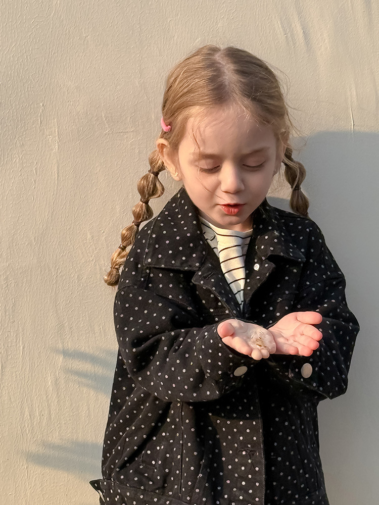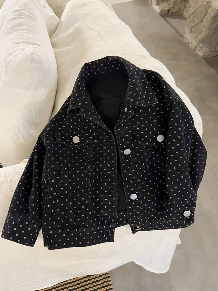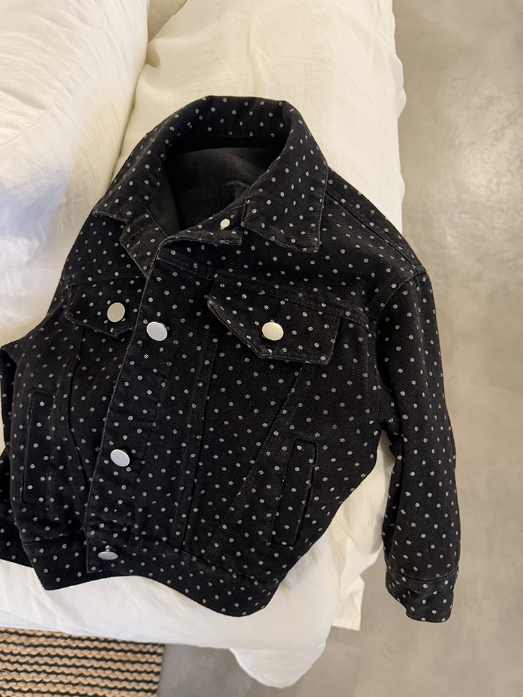 어린이 물방울무늬 재킷 2025 봄 가을 신상 한국판 남녀 아동용 고품질 데님 긴팔 재킷