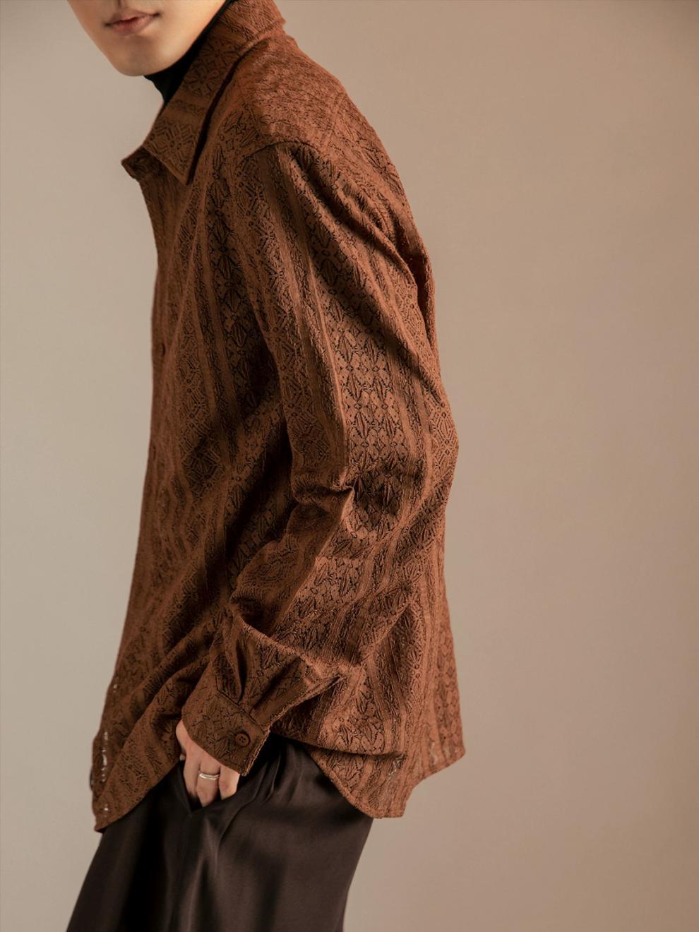 화이트 뉴 레트로 할로우 셔츠 남자의 느낌 편안한 일본 스타일 캐주얼 올 매치 긴팔 트렌디 셔츠스토어 가기