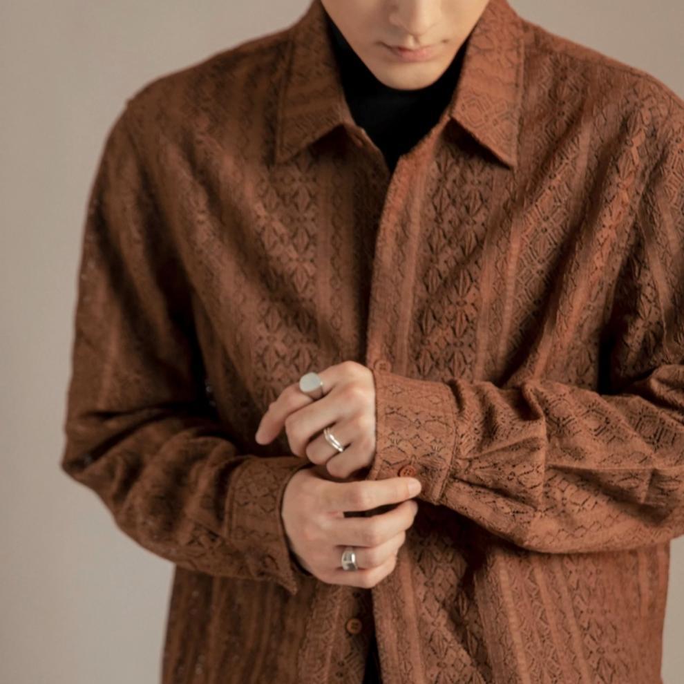 화이트 뉴 레트로 할로우 셔츠 남자의 느낌 편안한 일본 스타일 캐주얼 올 매치 긴팔 트렌디 셔츠