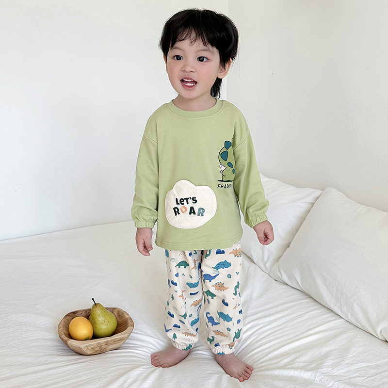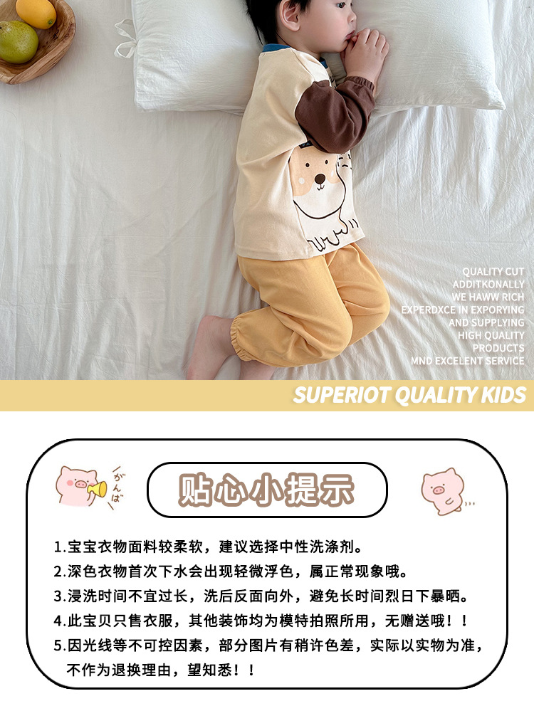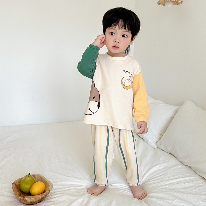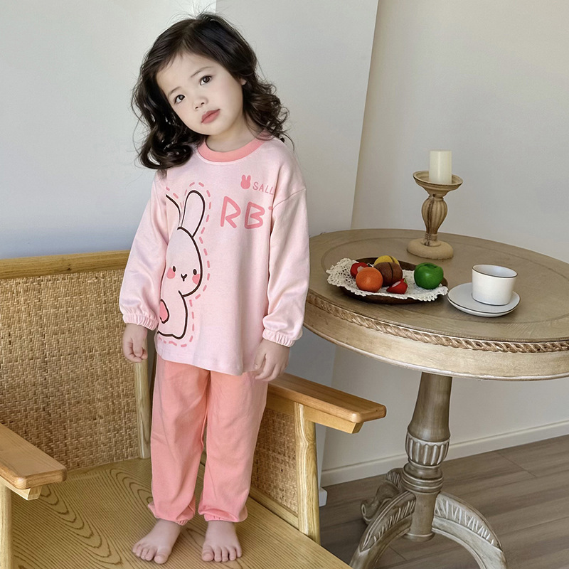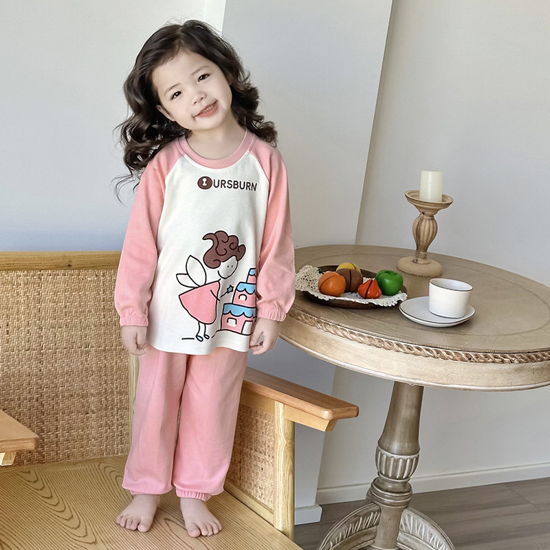 어린이 잠옷 소녀 풀오버 칼라 긴 소매 바지 홈 옷 세트 면 2024 봄 새 스타일 소년 소녀스토어 가기
