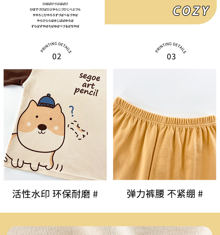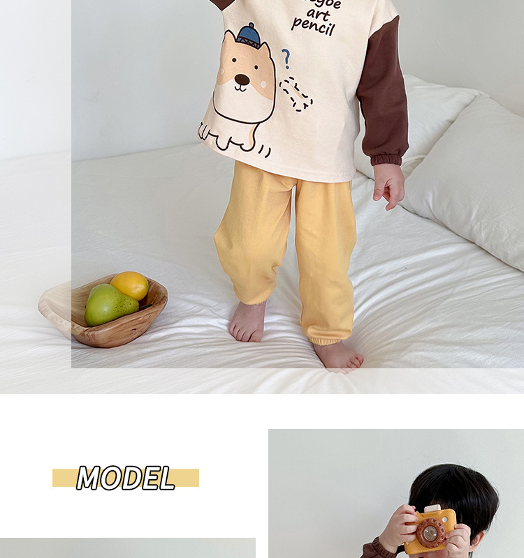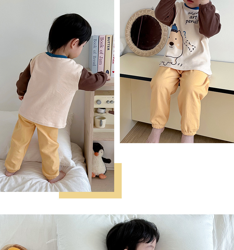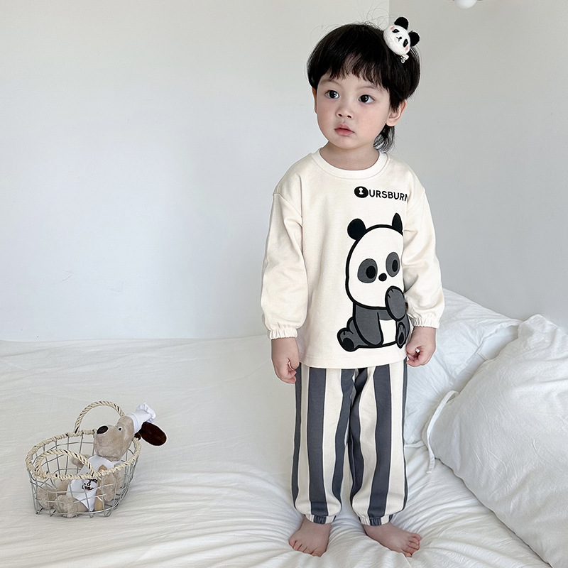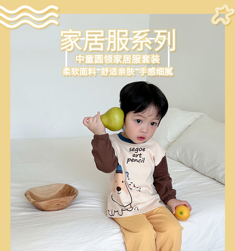 어린이 잠옷 소녀 풀오버 칼라 긴 소매 바지 홈 옷 세트 면 2024 봄 새 스타일 소년 소녀스토어 가기
