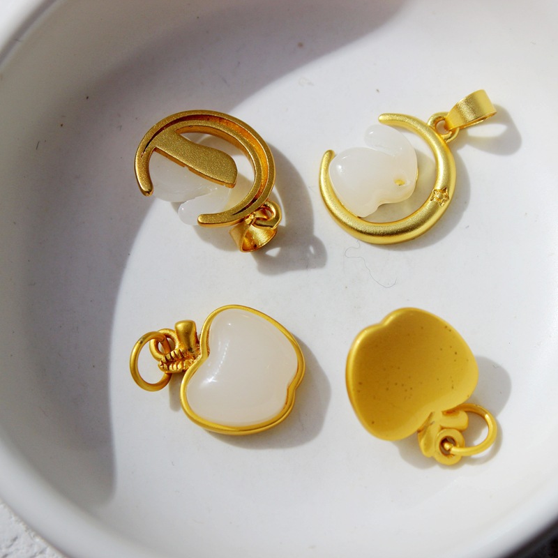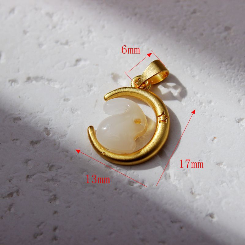 18k包金保色镶白玉料沙金月亮兔苹果吊坠手工diy项链手链饰品配件
