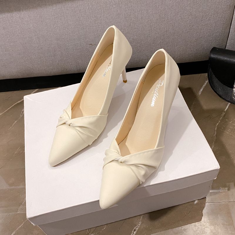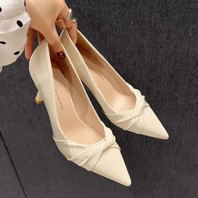 아이보리 올 매치 활 뾰족한 발가락 얕은 스틸레토 힐 슈즈 프랑스 요정 스타일 하이힐 슈즈 여성용 2024 새로운 도착스토어 가기
