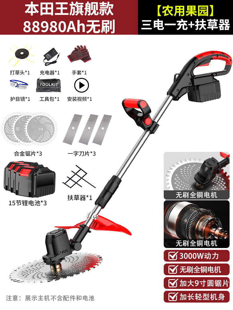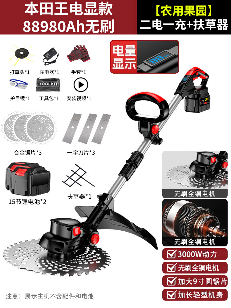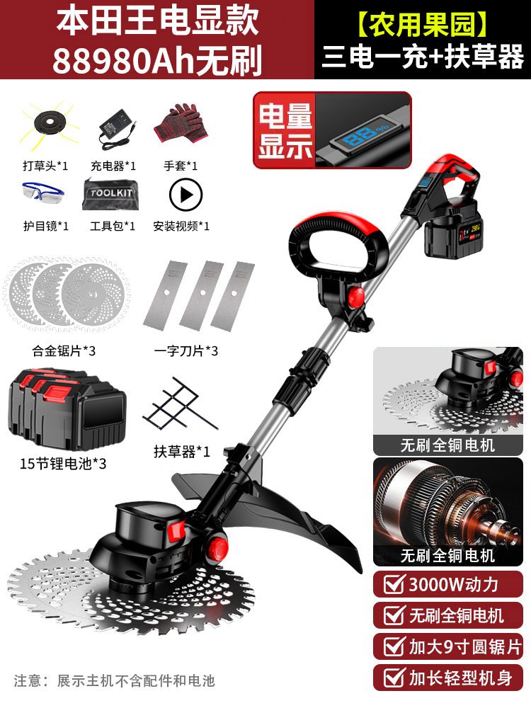 • 혼다 킹 전자 디스플레이 버전 88980Ah 브러시리스 [농업 과수원] 배터리 3개 및 충전기 1개 + 잔디깎이 장치