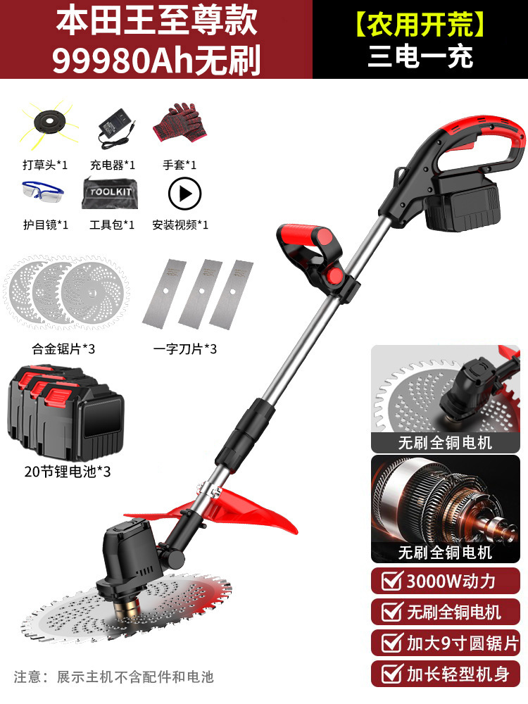 • 혼다 킹 슈프림 모델 99980Ah 브러시리스 [농업용 황무지 개회] 배터리 3개 및 충전기 1개 + 잔디깎이 장치