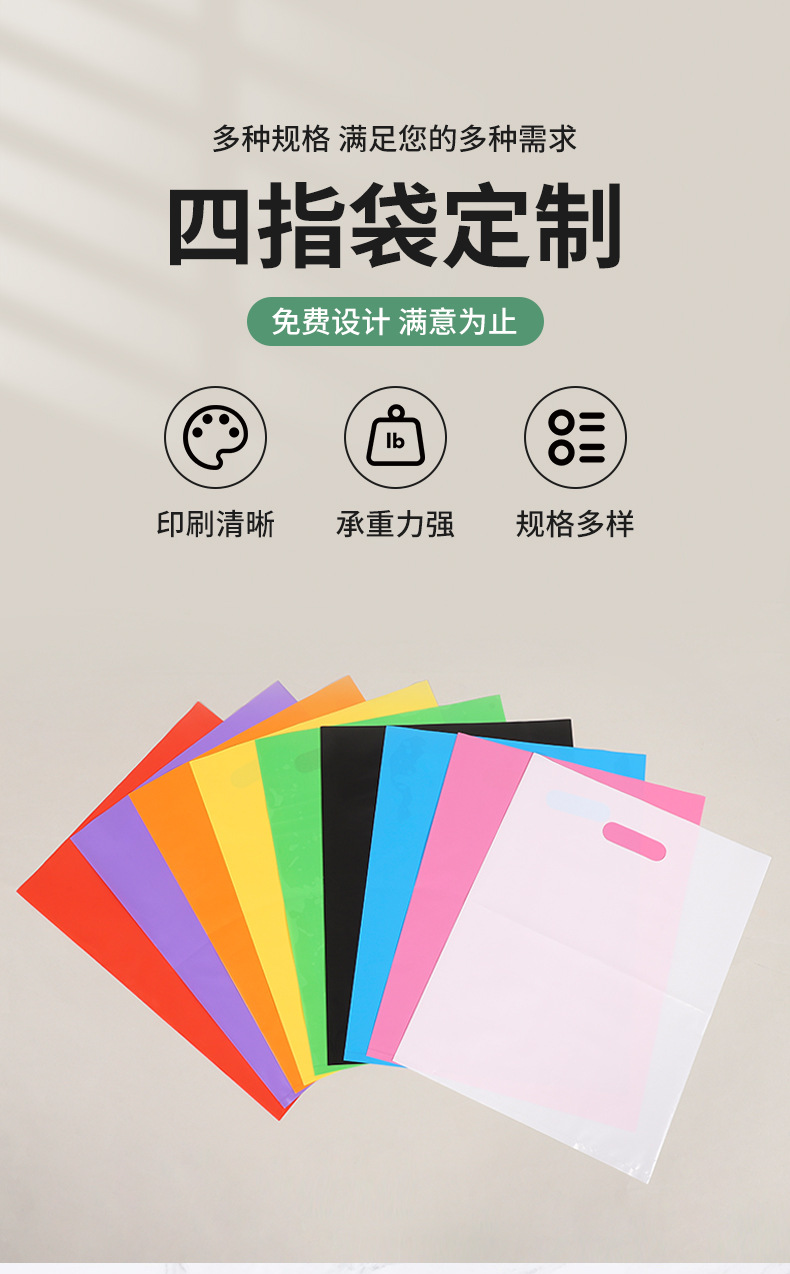 공장 도매 네 손가락 가방 맞춤형 평면 의류 가방 광고 가방 선물용 플라스틱 손잡이 포장 가방 로고 인쇄스토어 가기