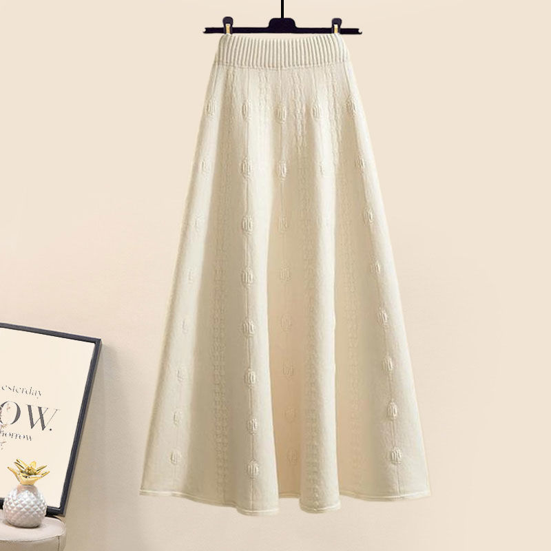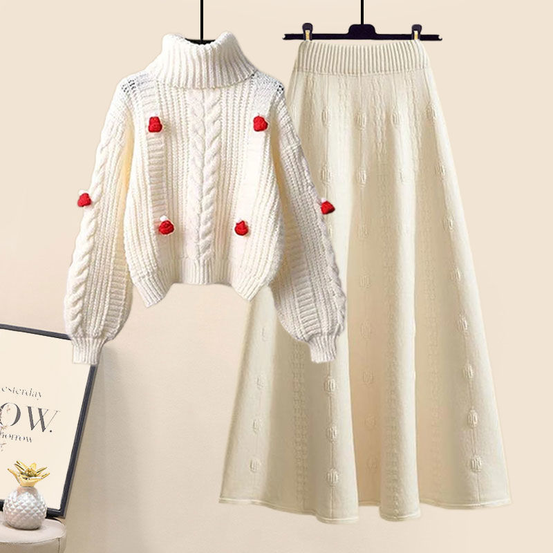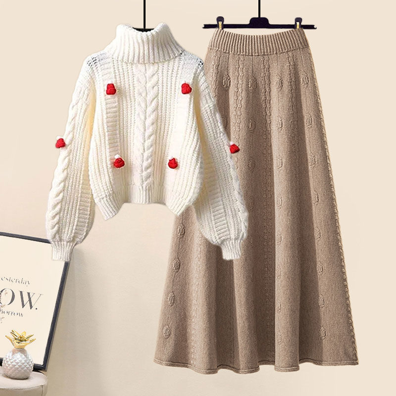 • 흰색 스웨터 + 살구 스커트 [투피스 세트]