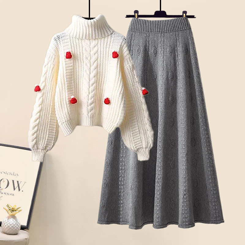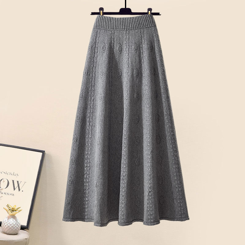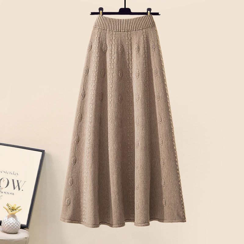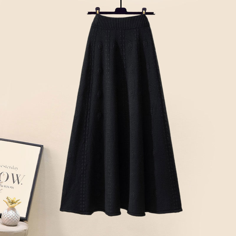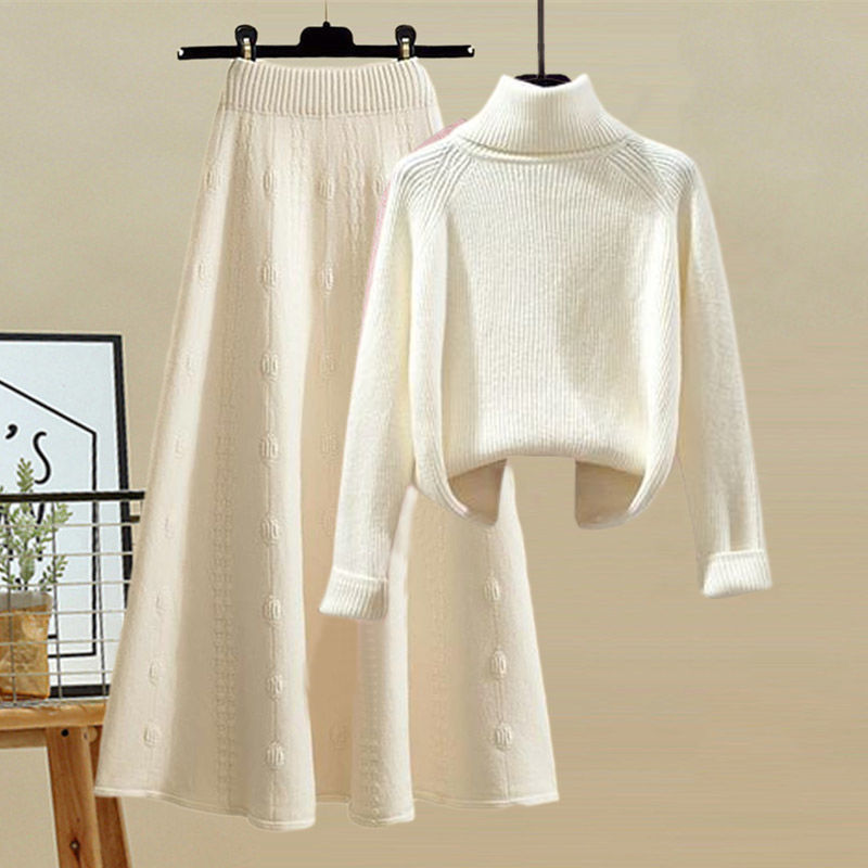 플러스 사이즈 여자 가을과 겨울 세트 여자 2024 새로운 스타일의 스웨터 스웨터 여자 올 매치 스커트 투피스 세트