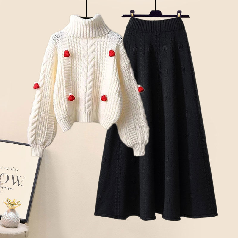 • 흰색 스웨터 + 검정색 스커트 [투피스 세트]