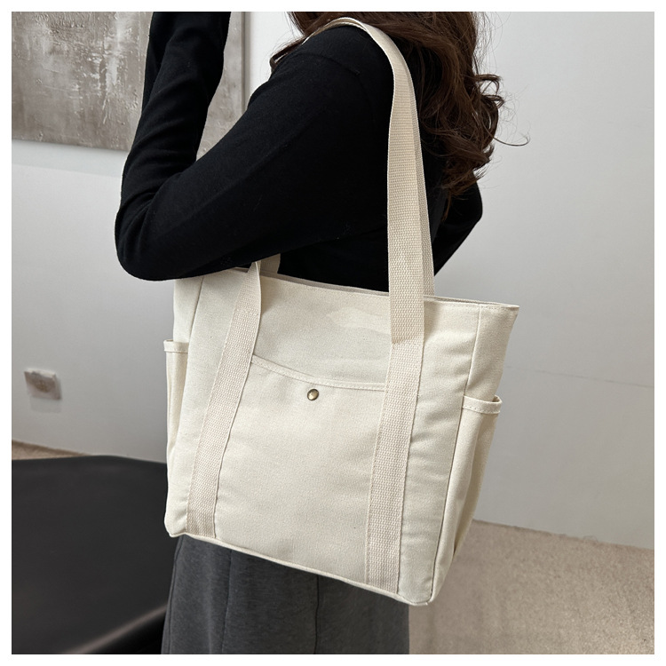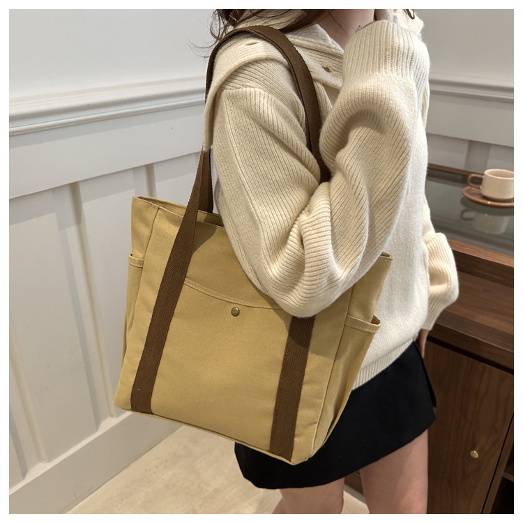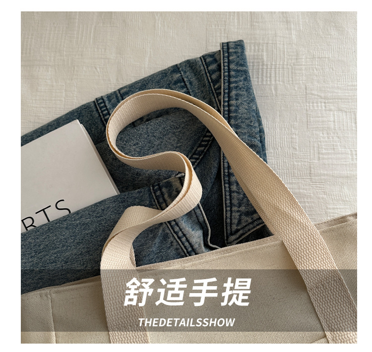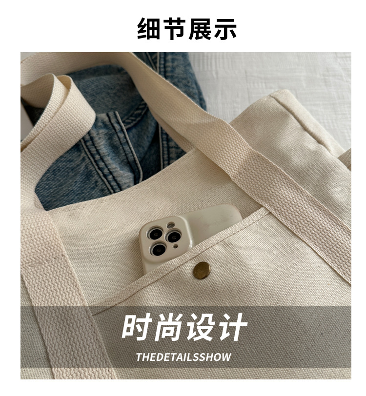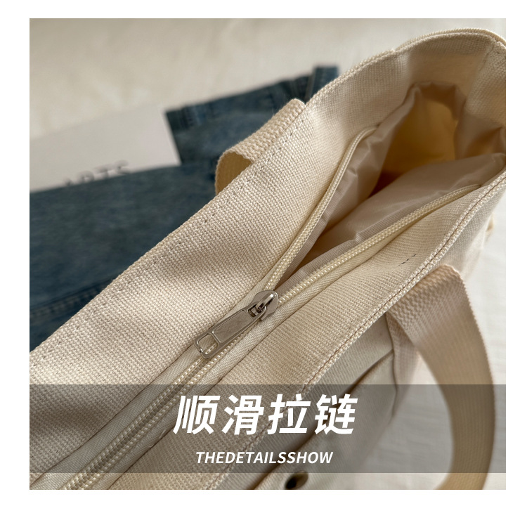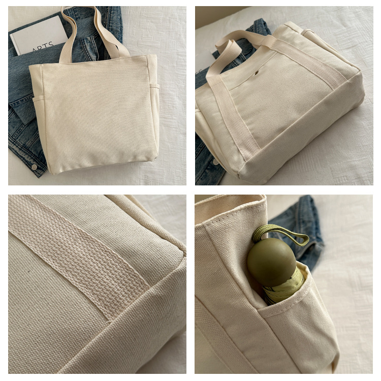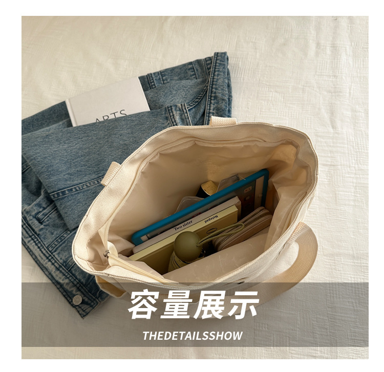 줄 지어 더블 포켓 지퍼 캔버스 가방 업그레이드 대용량 가방 토트 백 캔버스 가방 올 매치 학생 가방스토어 가기