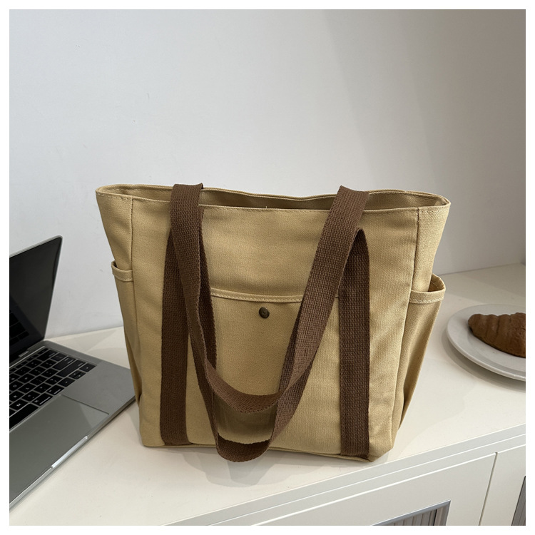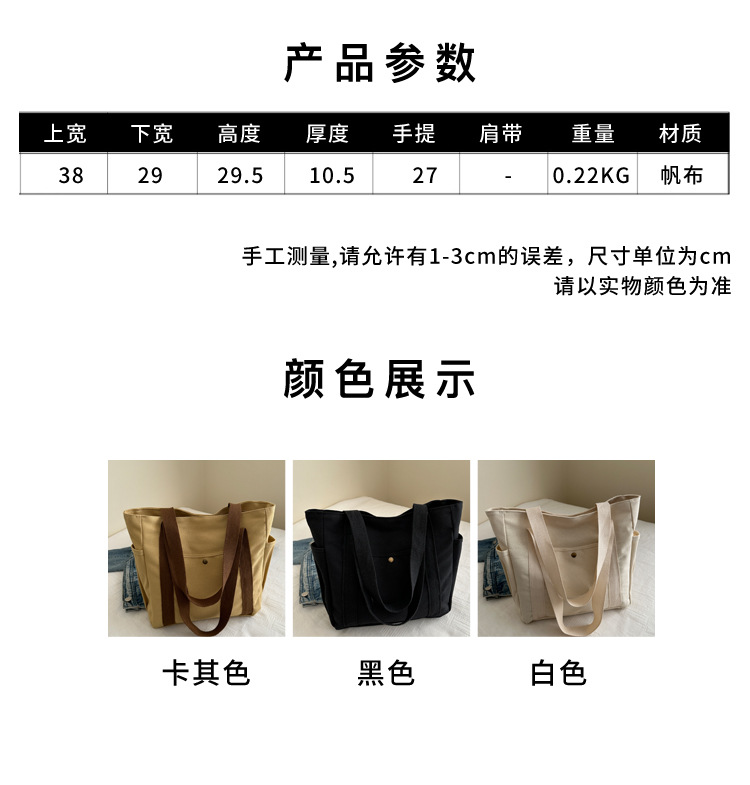 줄 지어 더블 포켓 지퍼 캔버스 가방 업그레이드 대용량 가방 토트 백 캔버스 가방 올 매치 학생 가방