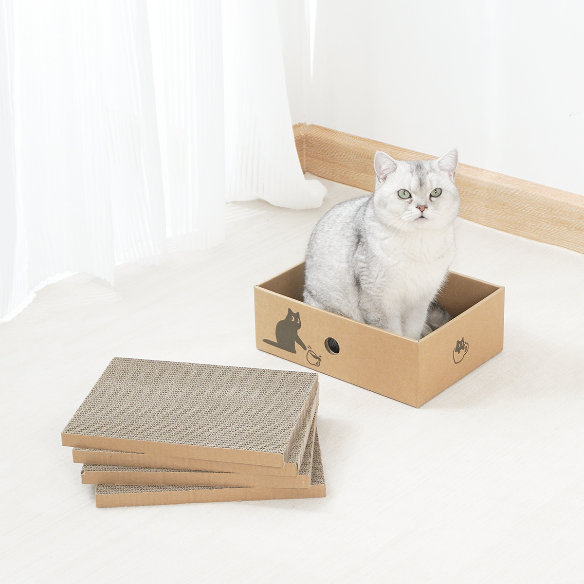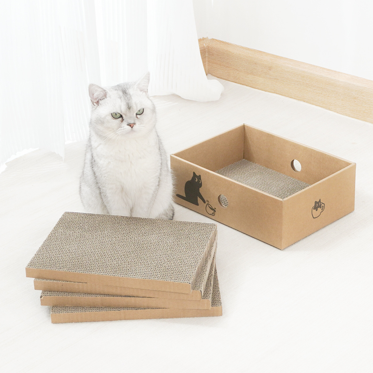 커피 고양이를위한 국경 간 만화 패턴 5-in -1 골판지 고양이 긁기 판 발톱 연삭 유물 환경 친화적 인 고양이 지루함을 해소하기 위해스토어 가기