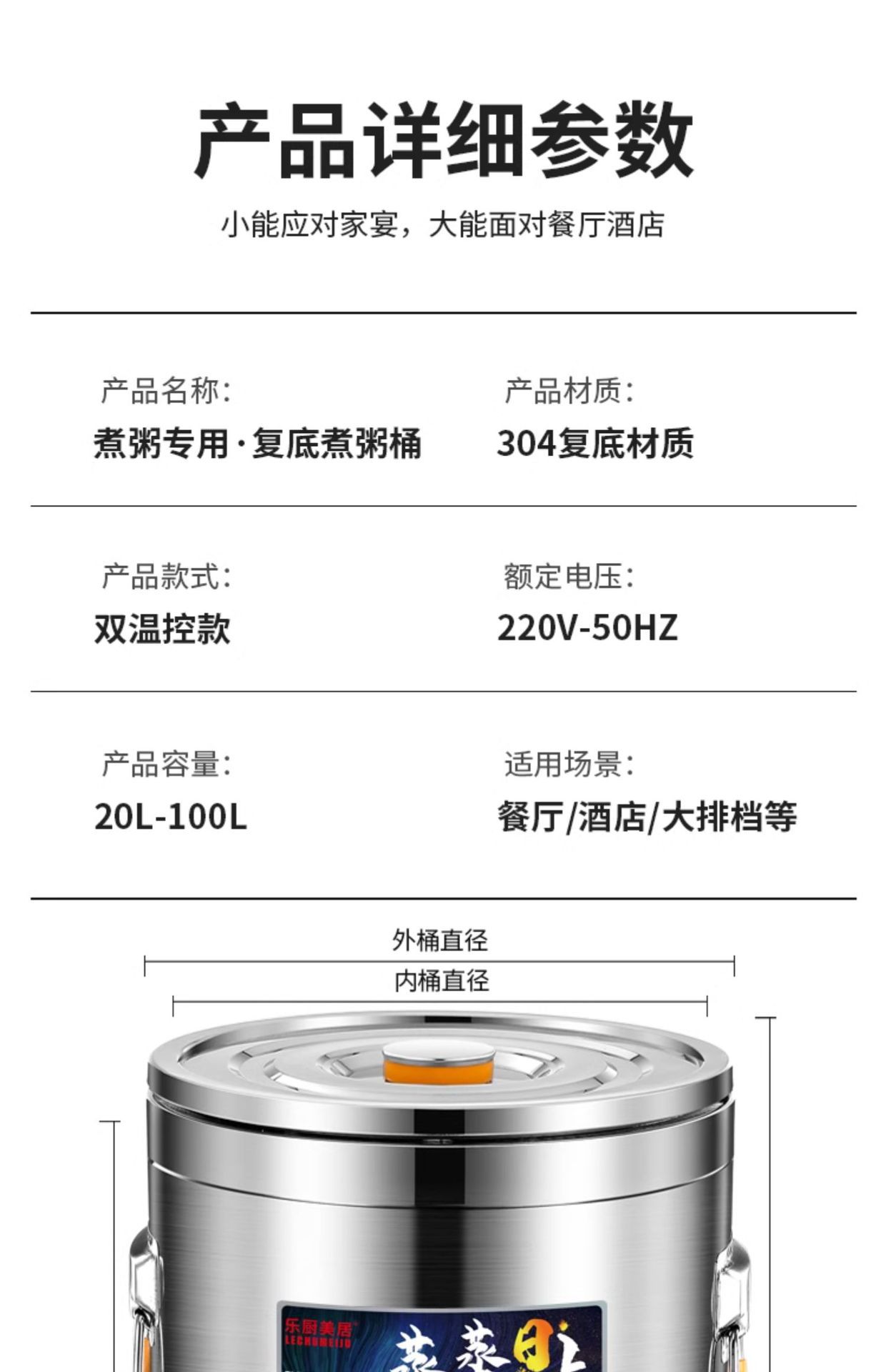 • [죽조림 - 소금물] 20L 수도꼭지 없음 [이중 온도 조절] (304 이중 바닥 접착 방지 및 부식 방지