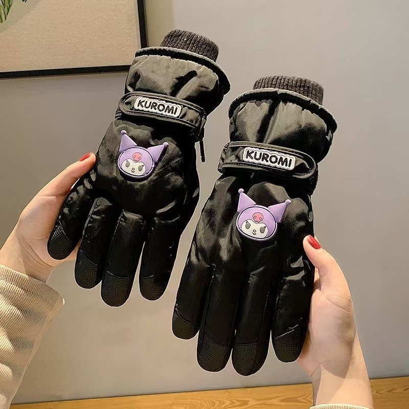 방풍 승마 스키 장갑 겨울 여성의 귀여운 산리오 기모 두껍게 따뜻한 감기 방지 야외 방수 터치 스크린