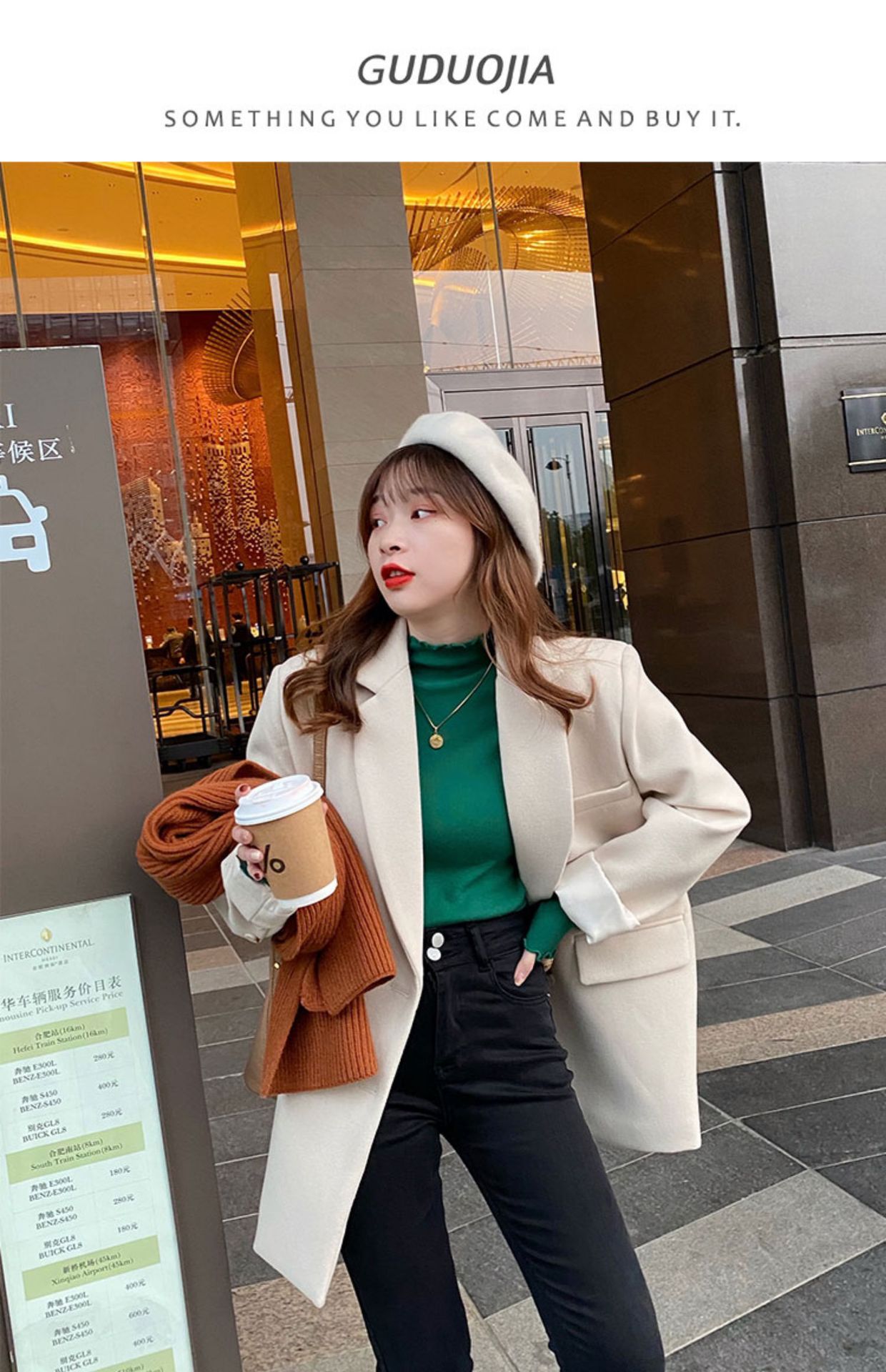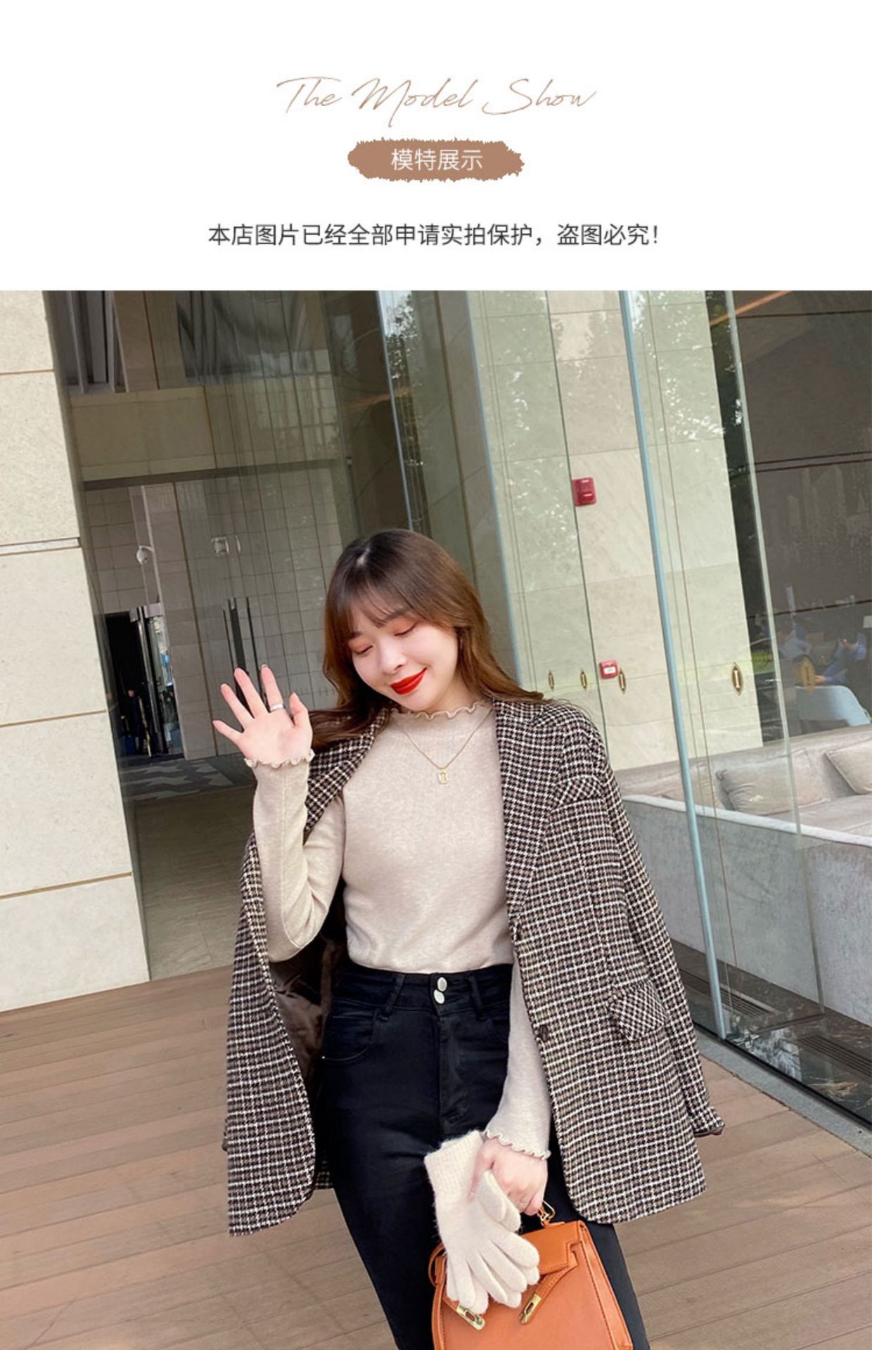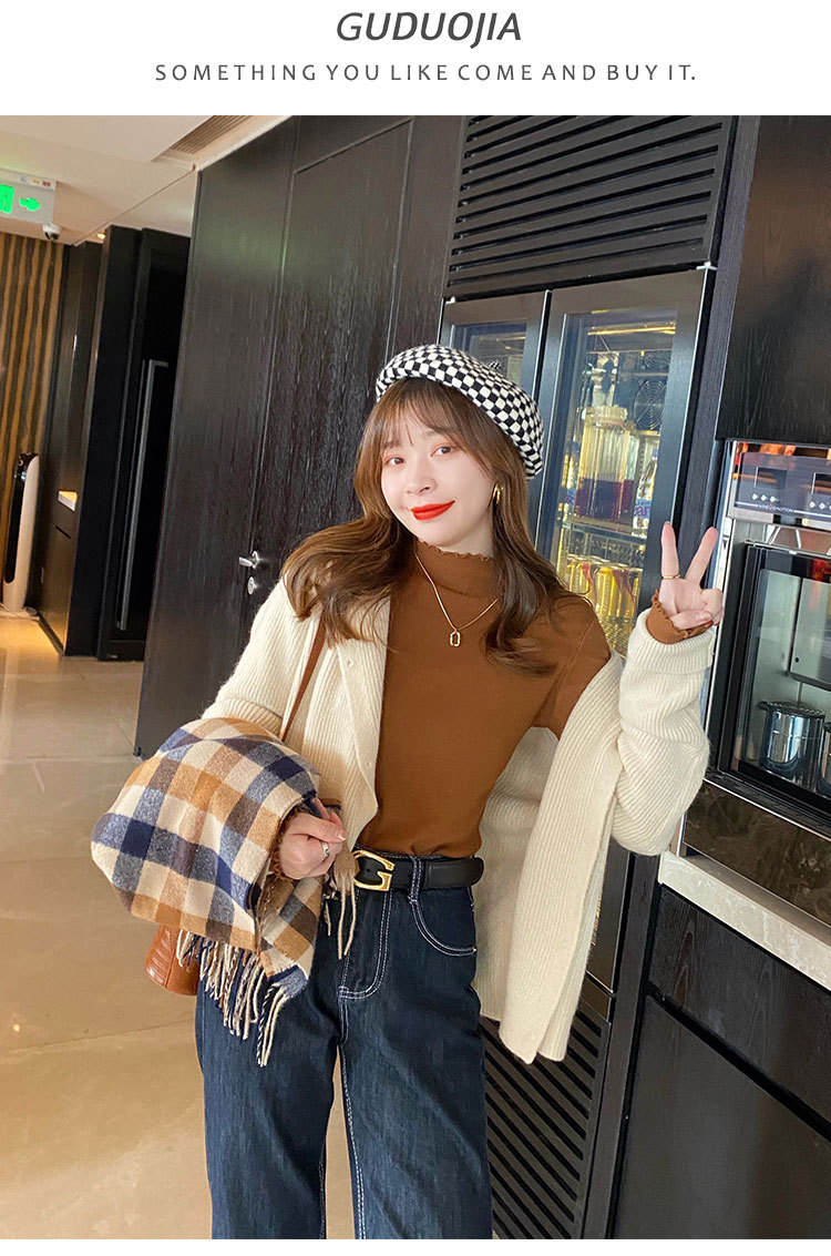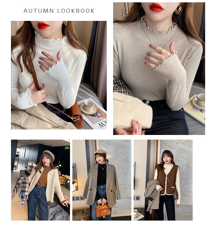 하프 터틀넥 바닥 스웨터 여성의 가을과 겨울 새로운 나무 귀 외국 스타일의 이너 슬림 핏 스웨터 꽉 끼는 미드 칼라 탑스토어 가기