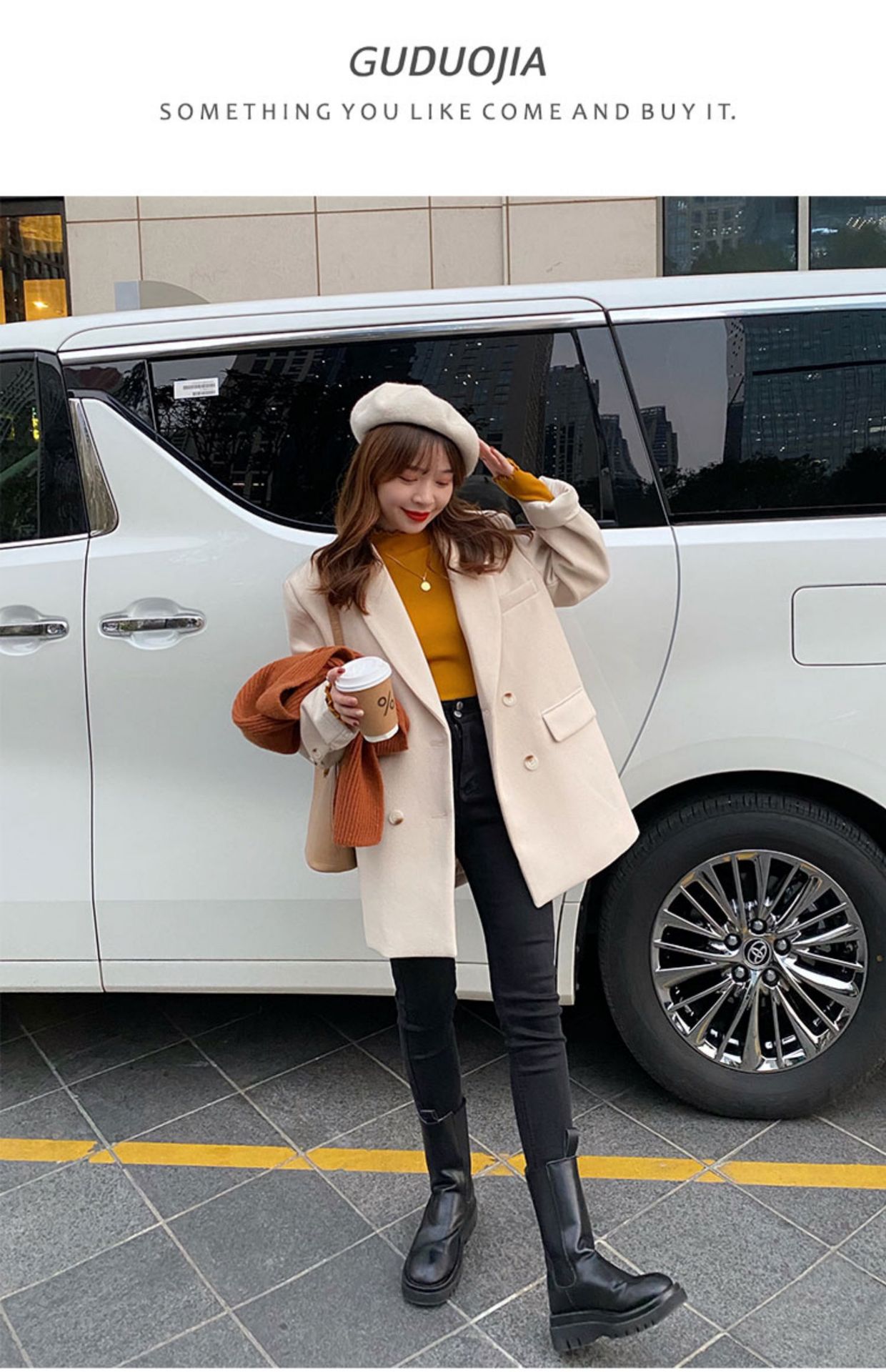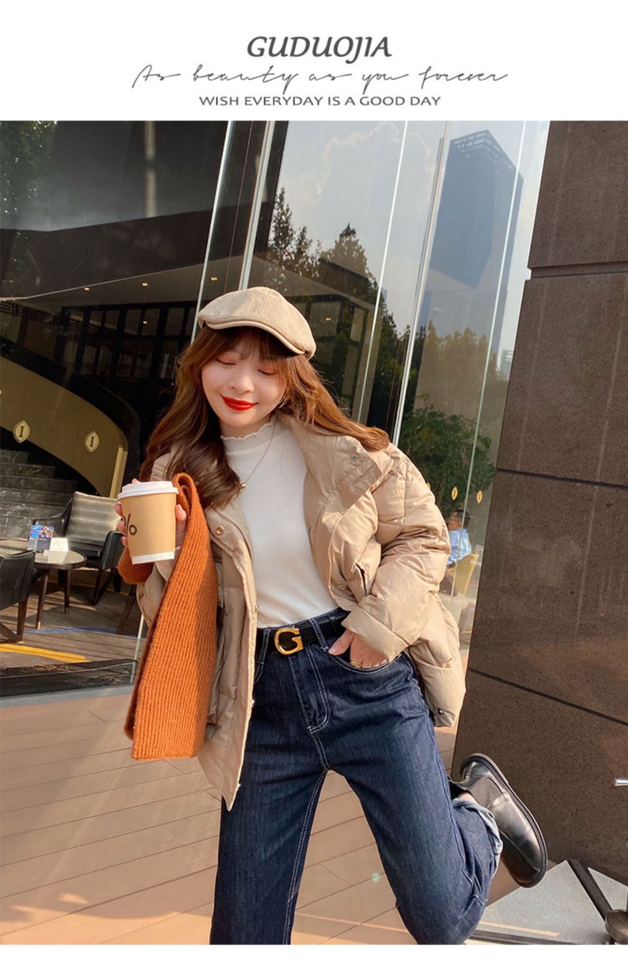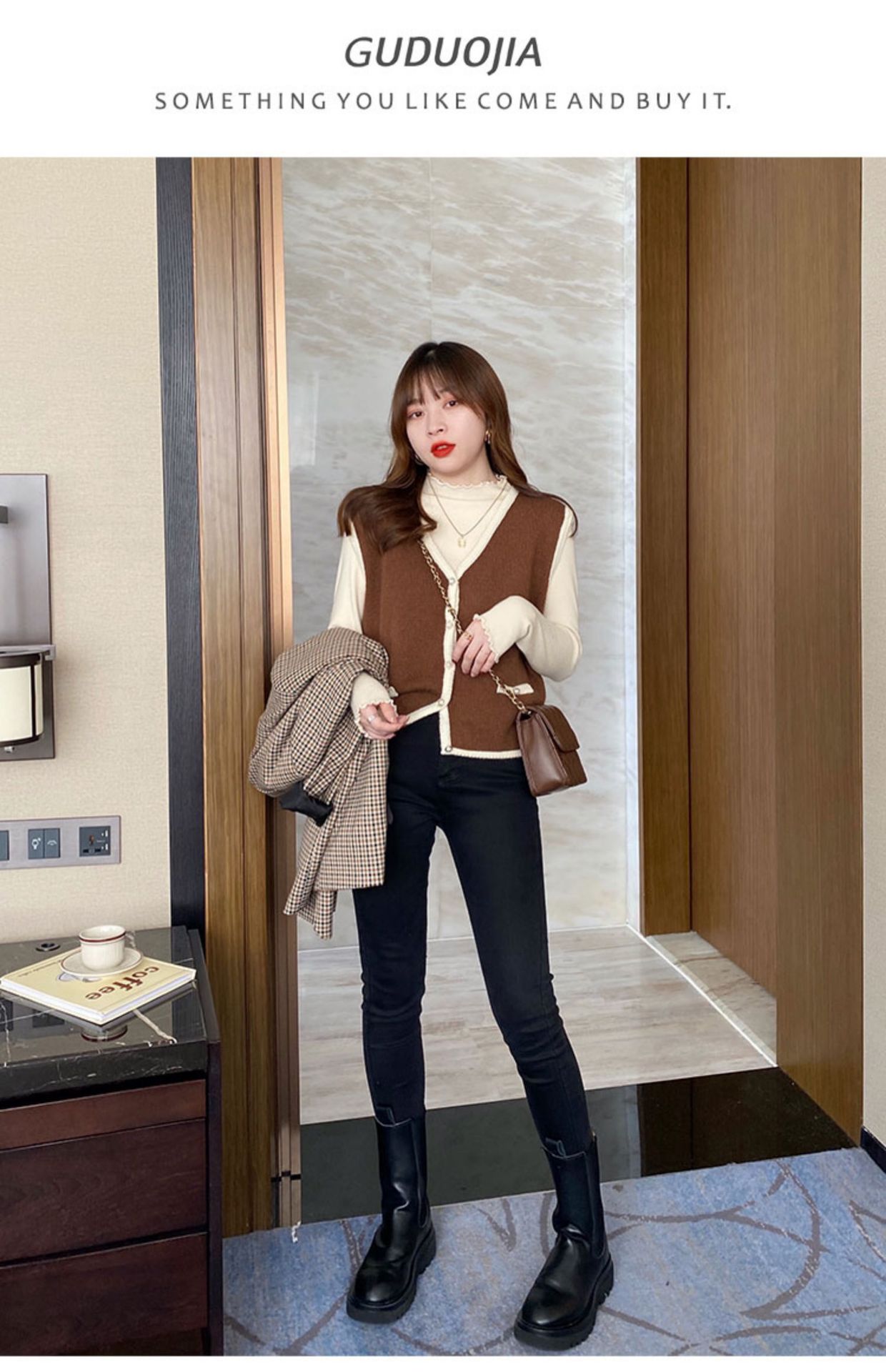하프 터틀넥 바닥 스웨터 여성의 가을과 겨울 새로운 나무 귀 외국 스타일의 이너 슬림 핏 스웨터 꽉 끼는 미드 칼라 탑스토어 가기