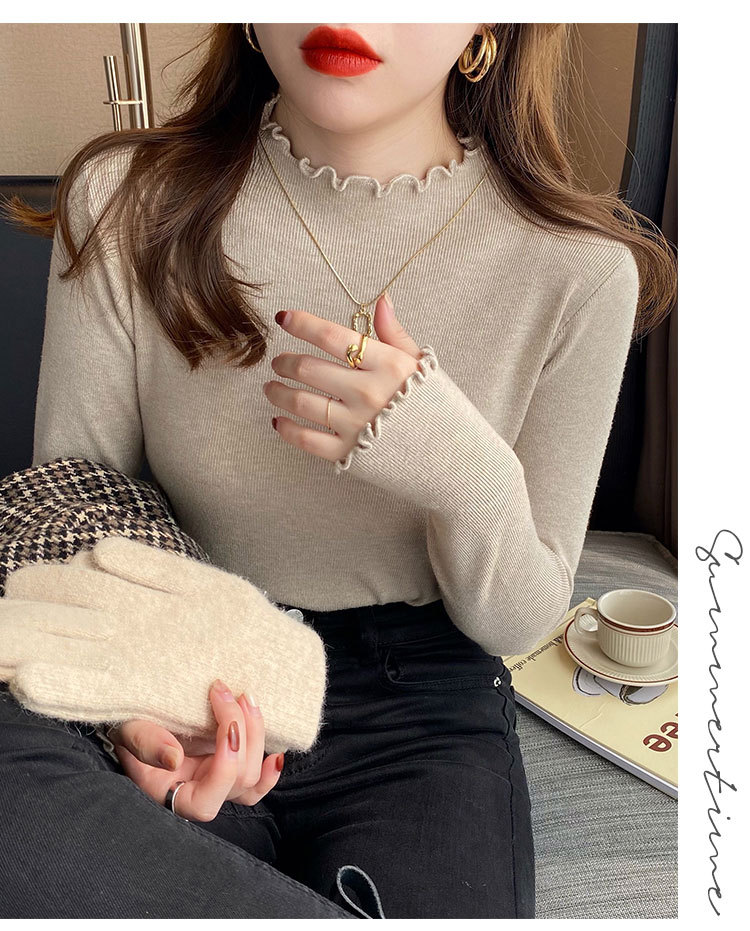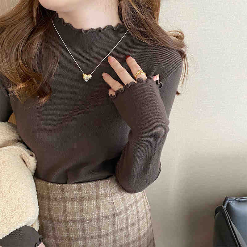 하프 터틀넥 바닥 스웨터 여성의 가을과 겨울 새로운 나무 귀 외국 스타일의 이너 슬림 핏 스웨터 꽉 끼는 미드 칼라 탑
