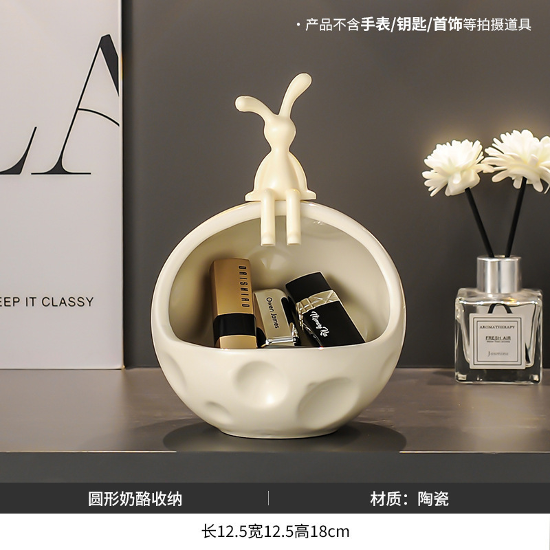 • 치즈 수납 - 유백색 앉아있는 토끼 - 흰색