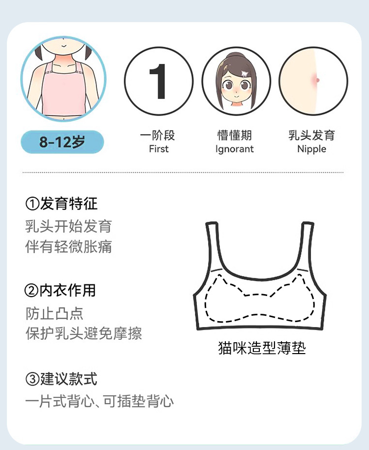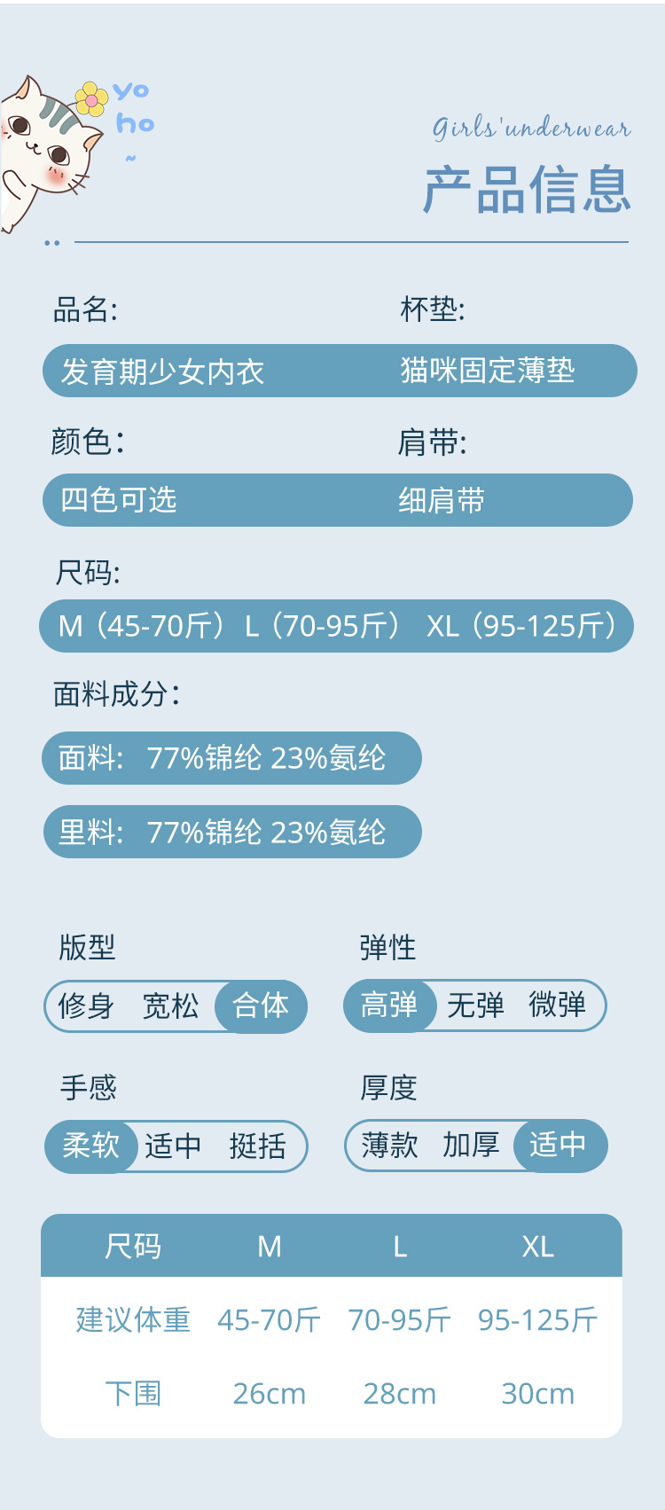 여아, 중학생, 노인, 멜빵을위한 발달 속옷, 포장 된 가슴 조끼, 13 세, 한 단계 원활한 브래지어스토어 가기