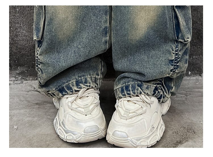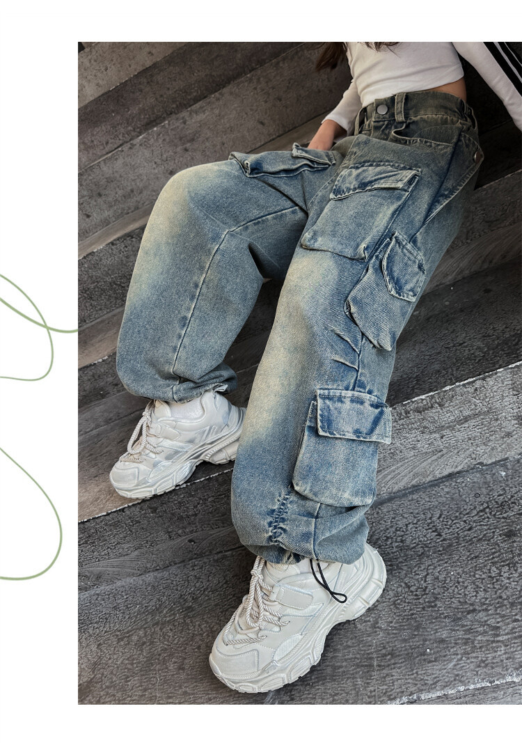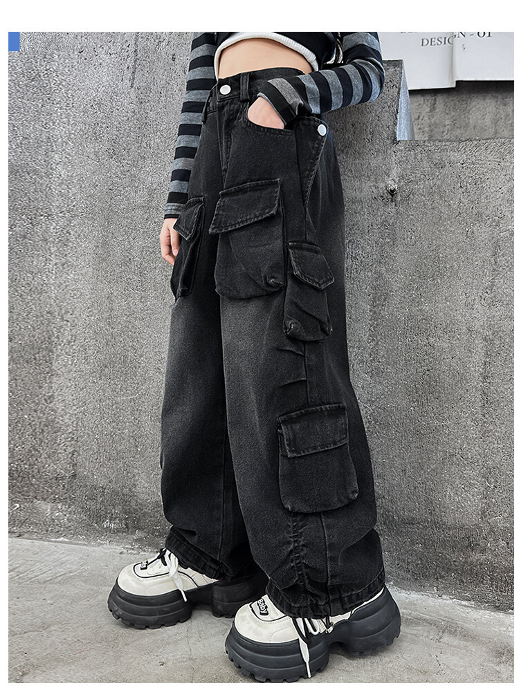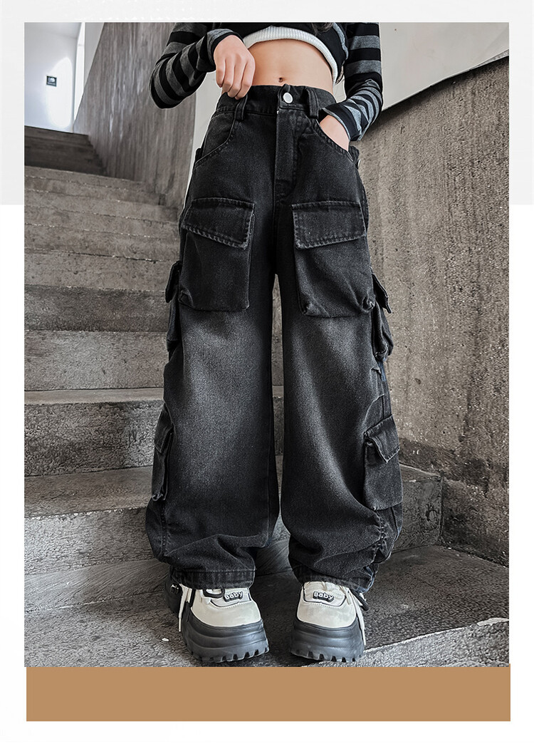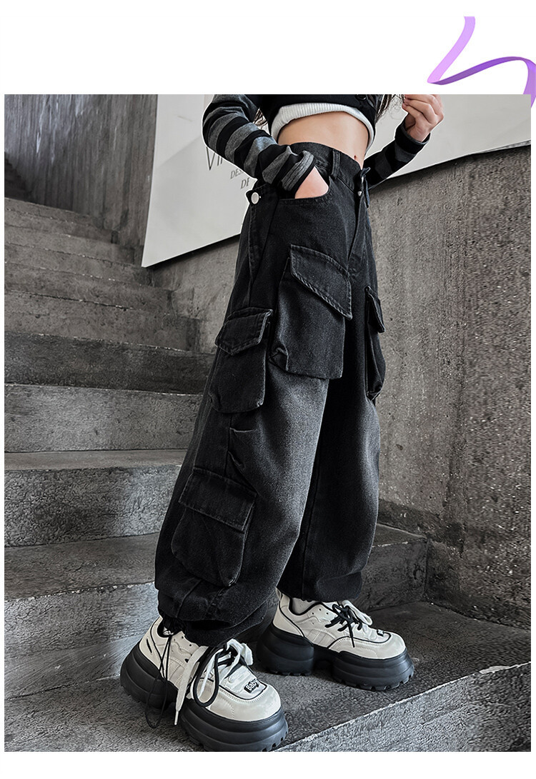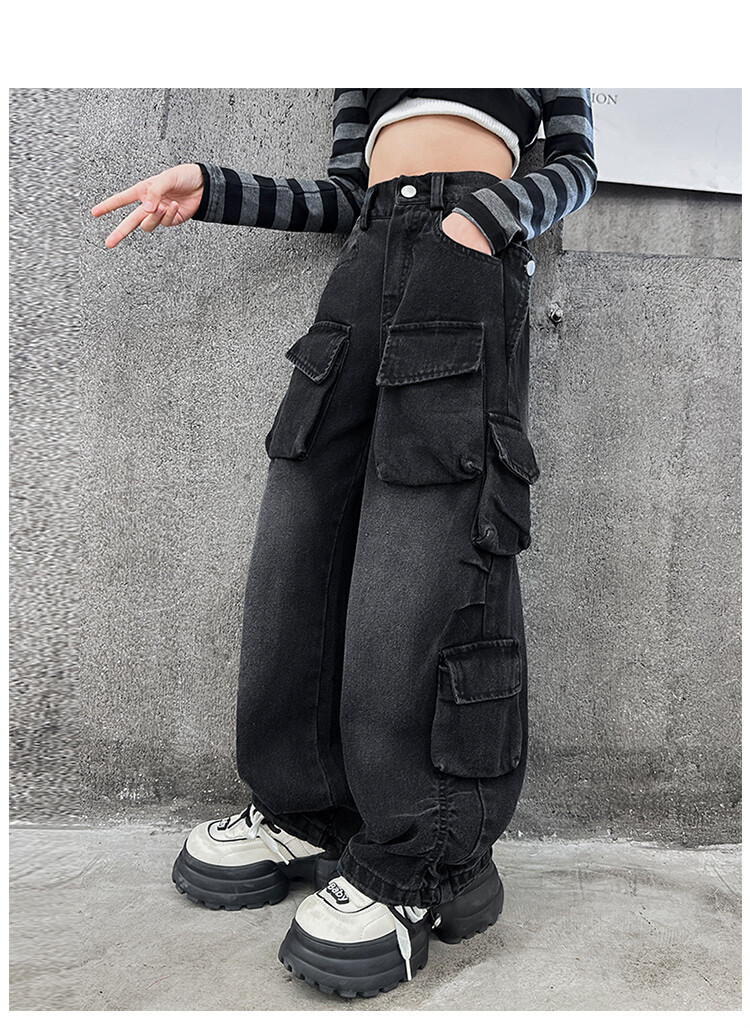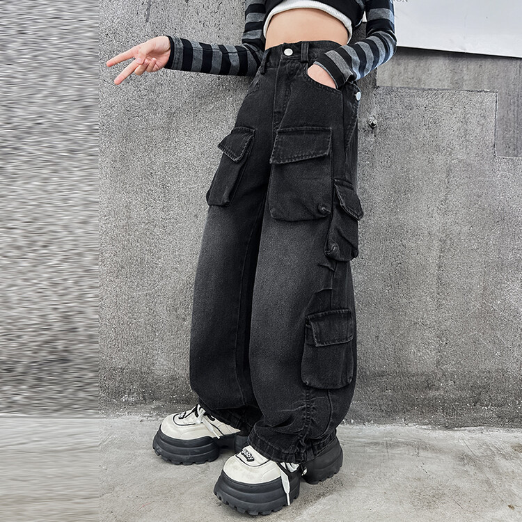 소녀들의 데님 봄과 가을 2025 년 새로운 큐크 어린이 외국 스타일의 봄 소녀 유행 스트레이트 레그 와이드 레그 팬츠스토어 가기