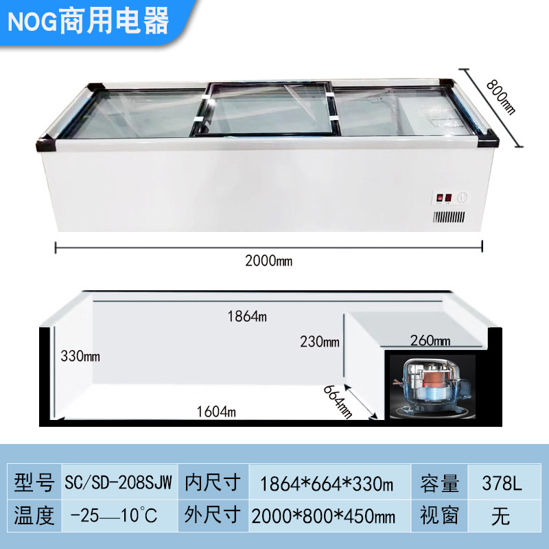 • 업그레이드된 모델 2m 길이 * 80cm 폭 전면 창(냉장/냉동/10~-15도)
