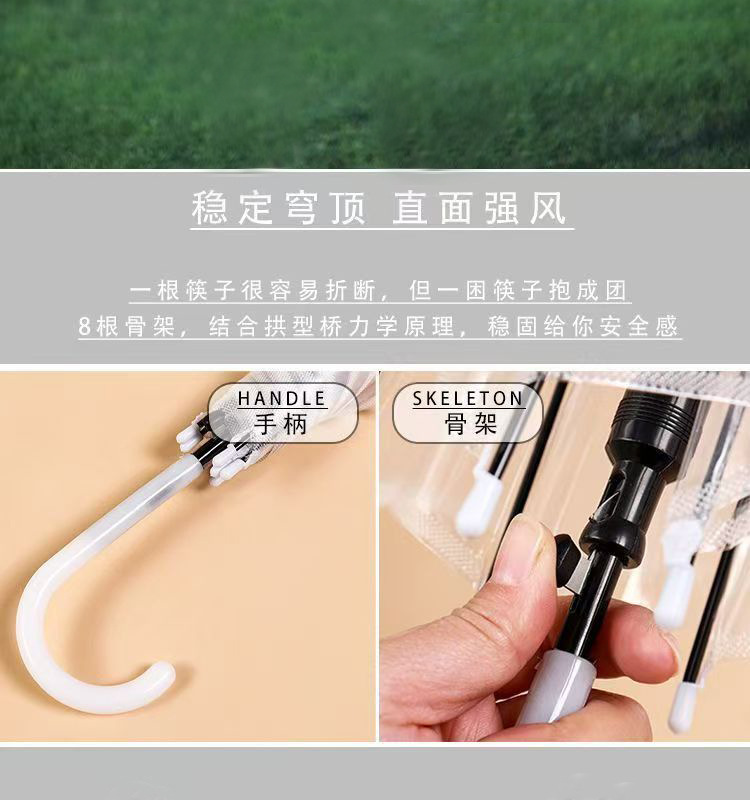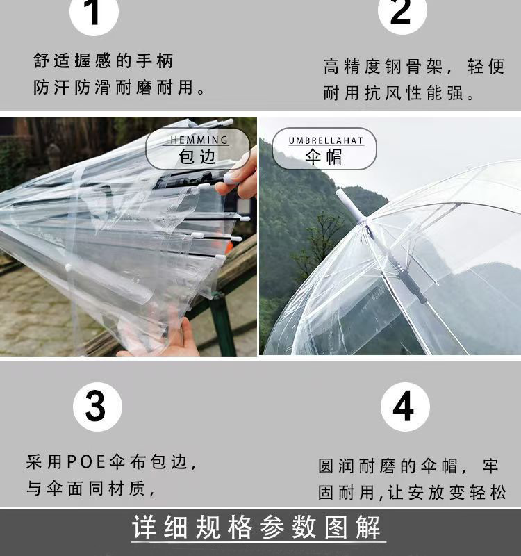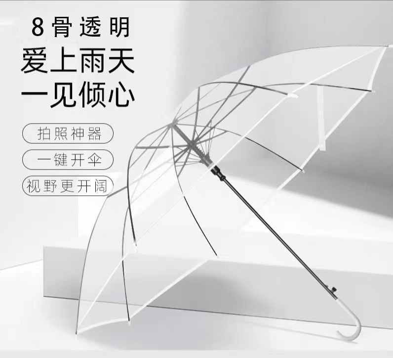 투명 우산 심플 긴 손잡이 대형 2인용 흰색 인기 자동 접이식 남녀 학생 어린이용 비/햇빛 겸용스토어 가기