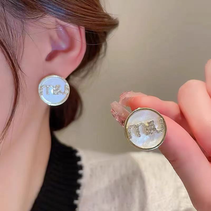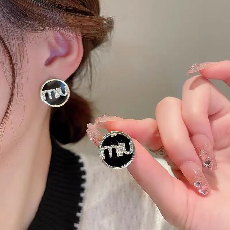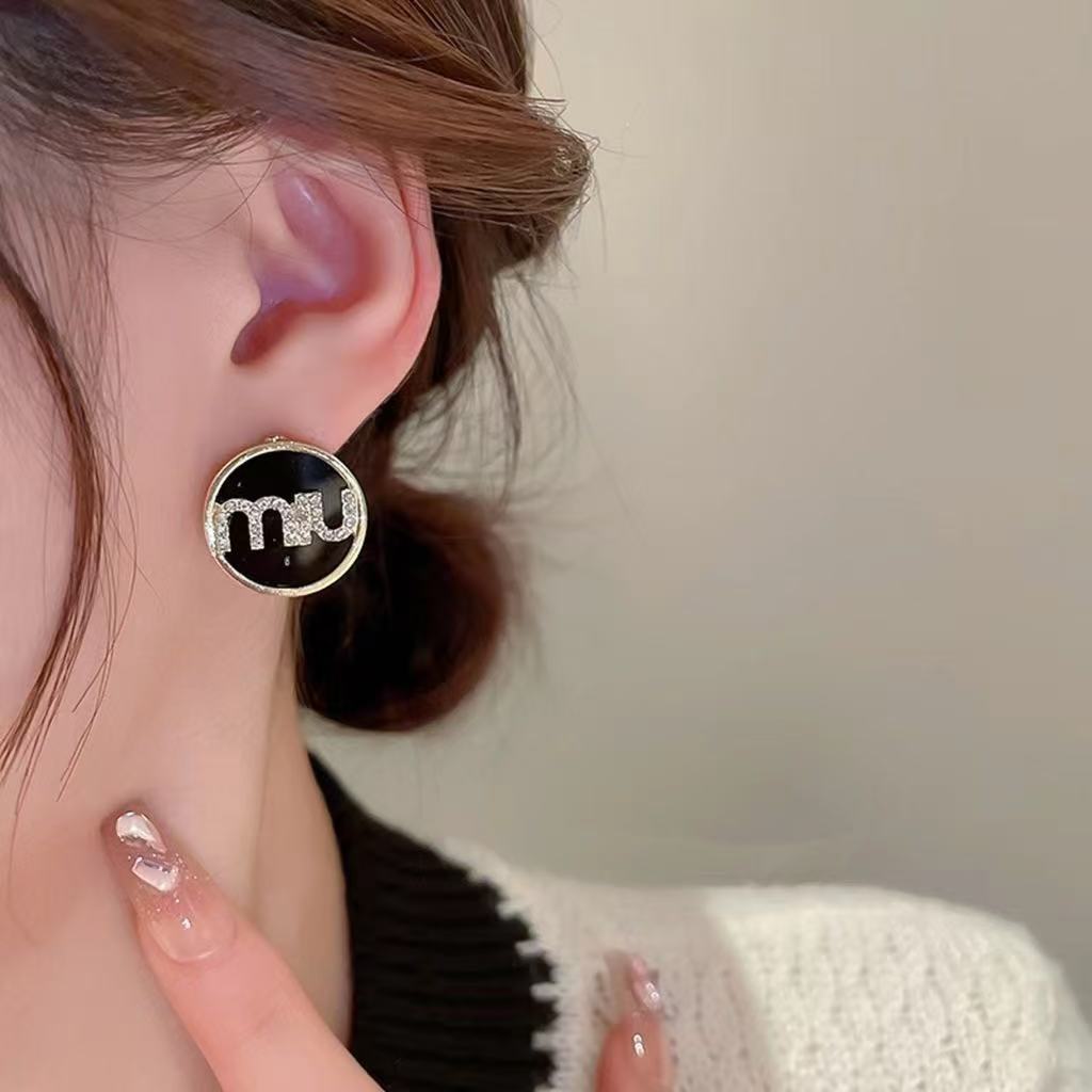 레트로 흑백 둥근 편지 스터드 귀걸이 기질 사교계 틈새 하이 엔드 귀걸이 여성을위한 새로운 독특한 귀걸이스토어 가기