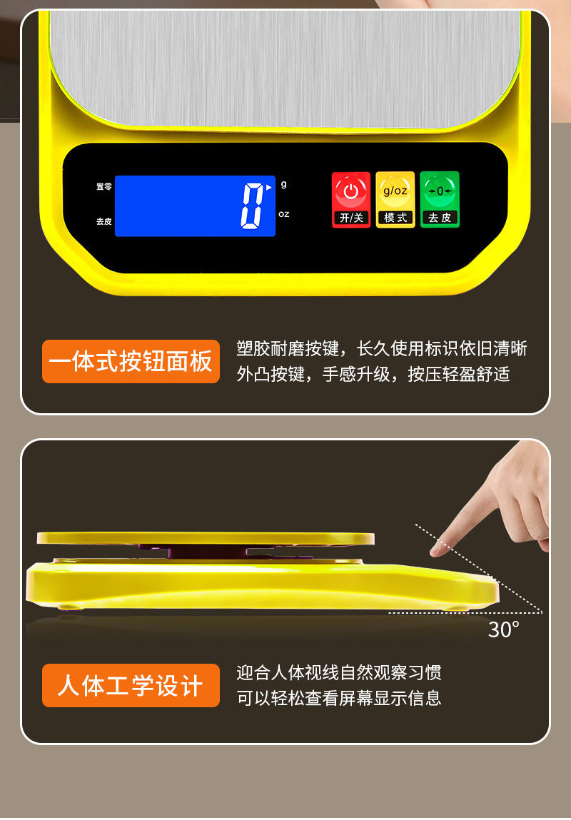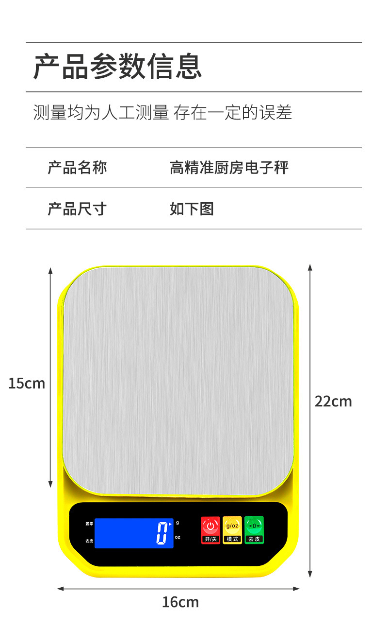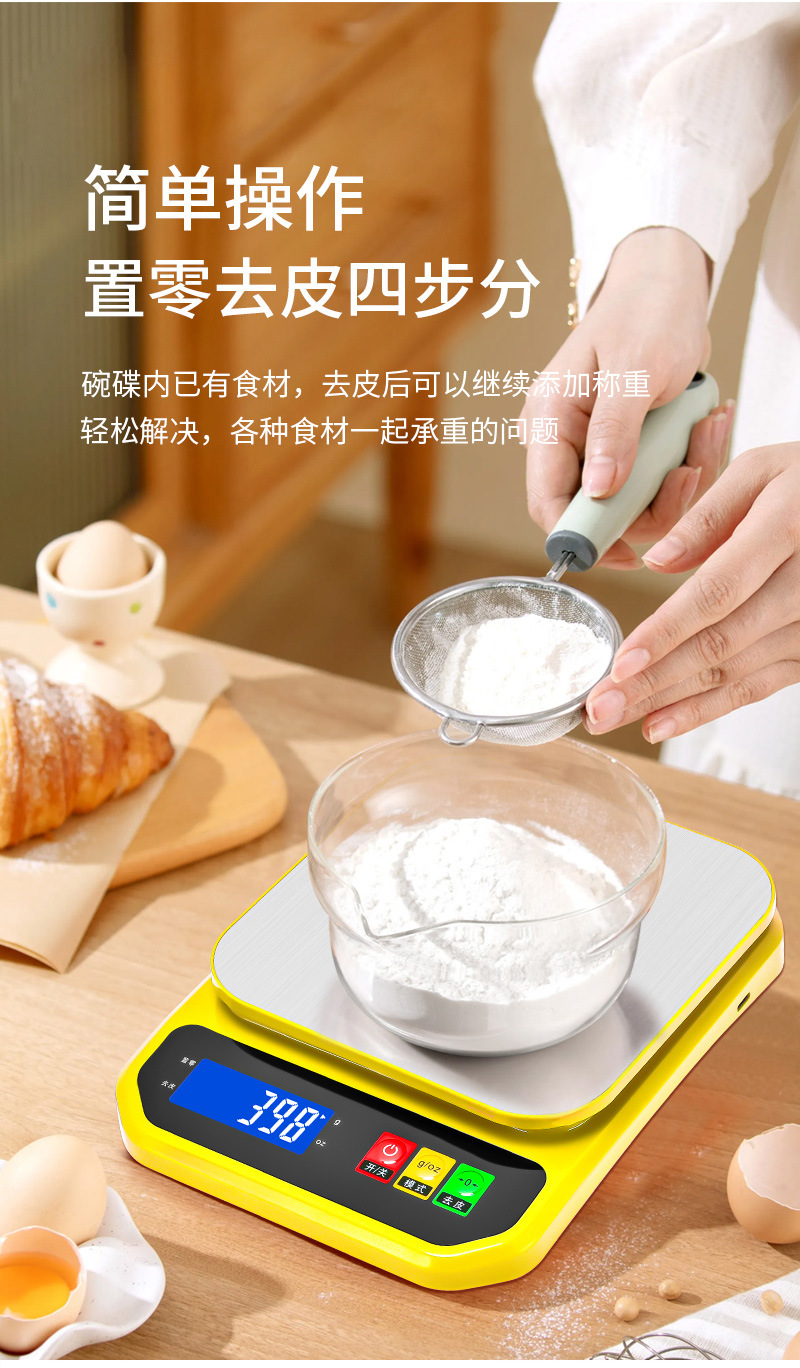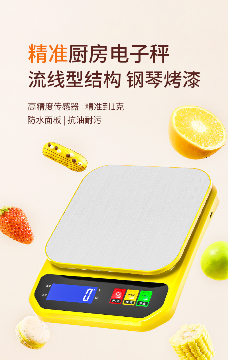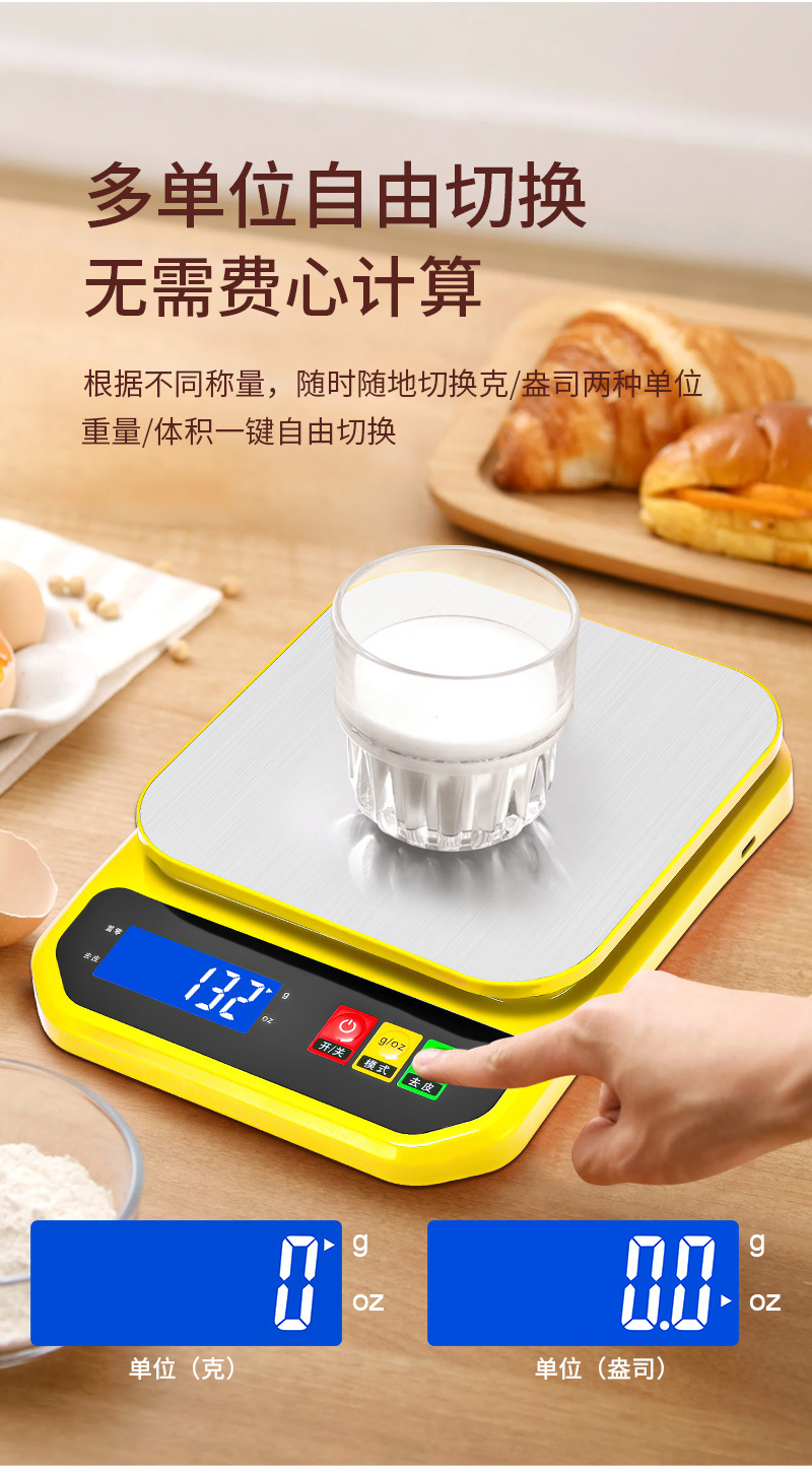 가정용 스테인레스 스틸 주방 규모 가정용 전자 계량 플랫폼 규모 식품 무게 정밀 계량 규모 작은 전자 규모 10kg스토어 가기